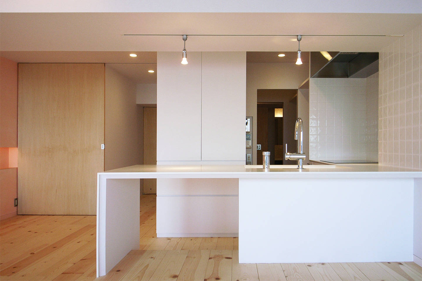 新宿の夜景を眺めながらお酒が楽しめるSOHOをコンセプトに、超高層のマンションの一室を女性的で開放的な空間にリノベーションしました。