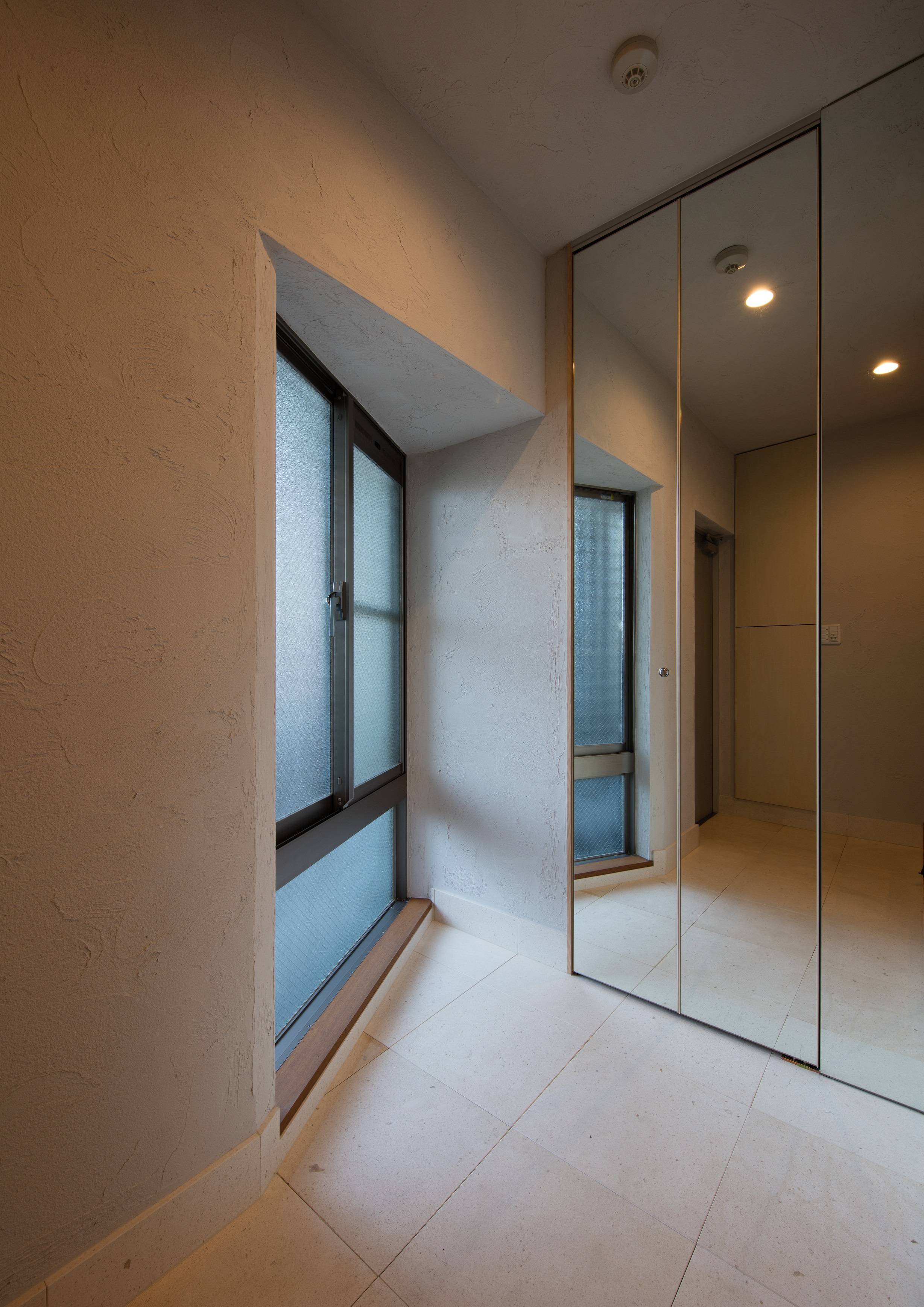 ・マンションの玄関はとにかく暗くなりがちですが、北側の窓を上手く利用して、シューズクロークを併設した明るく風通しの良い趣きある玄関ができました。