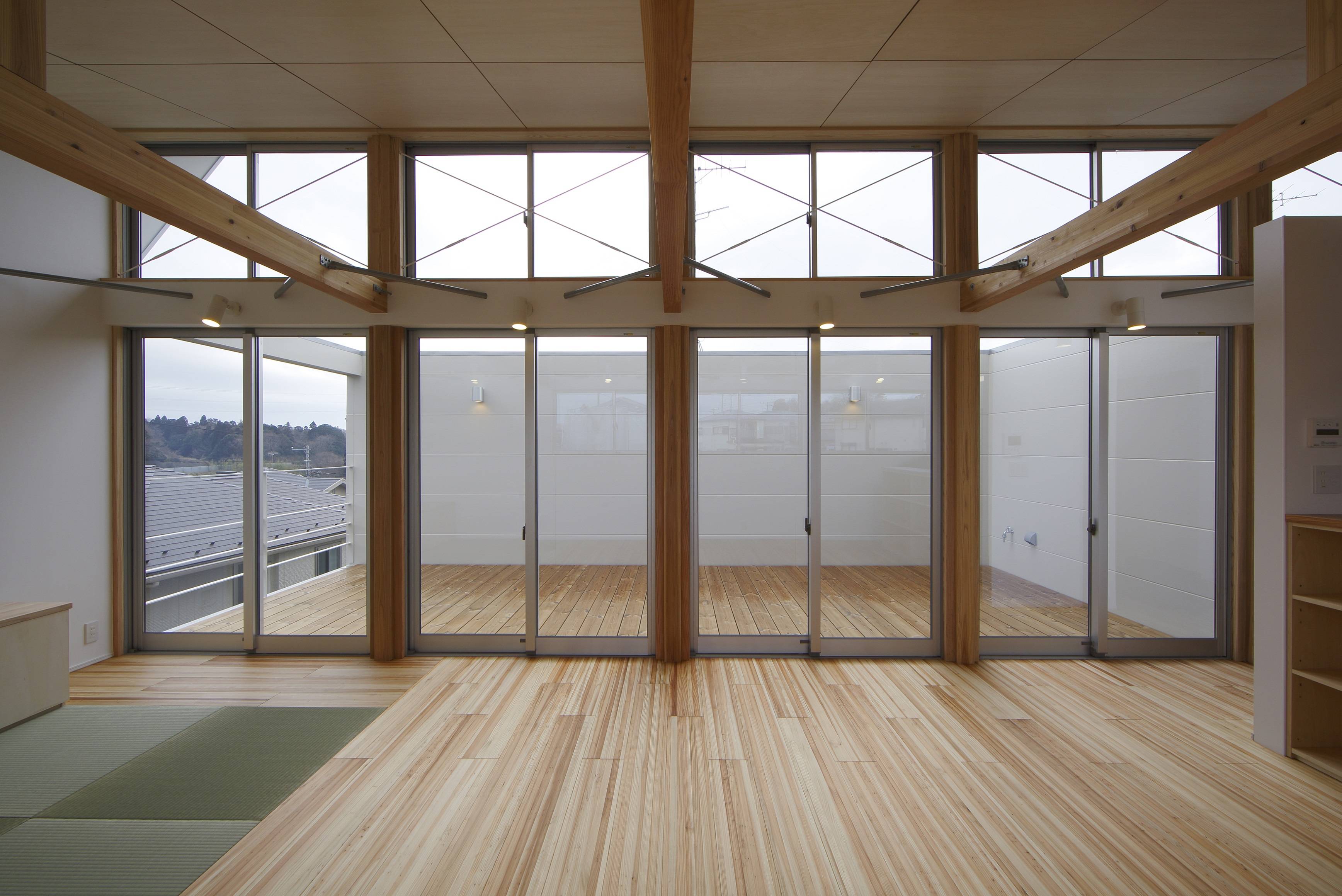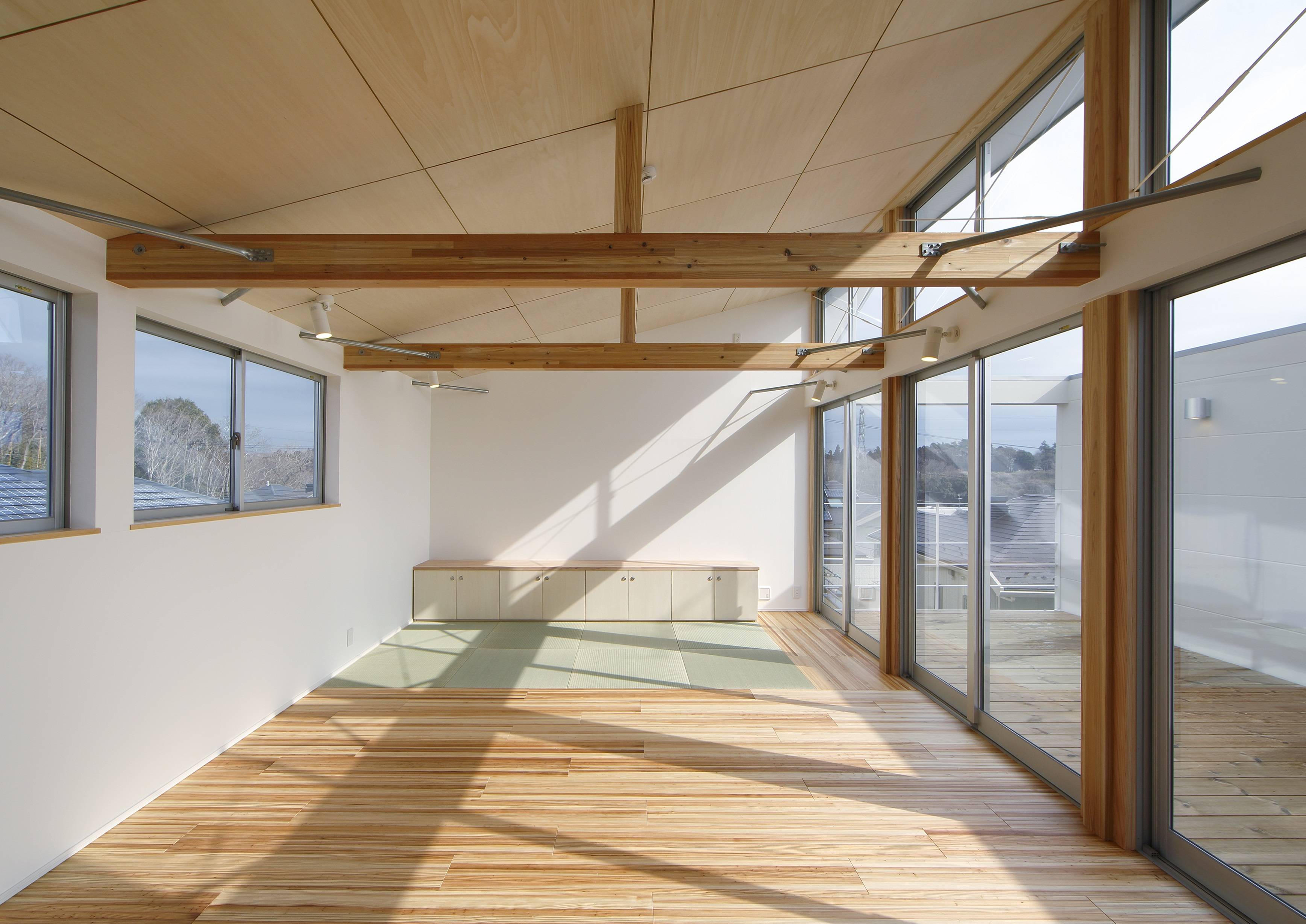 このルーフテラスと一体的な利用ができる食堂・居間・畳の間は、たっぷりの陽射しが差し込む、明るく暖かく、プライバシーを気にすることなく開放的に生活できる空間です。