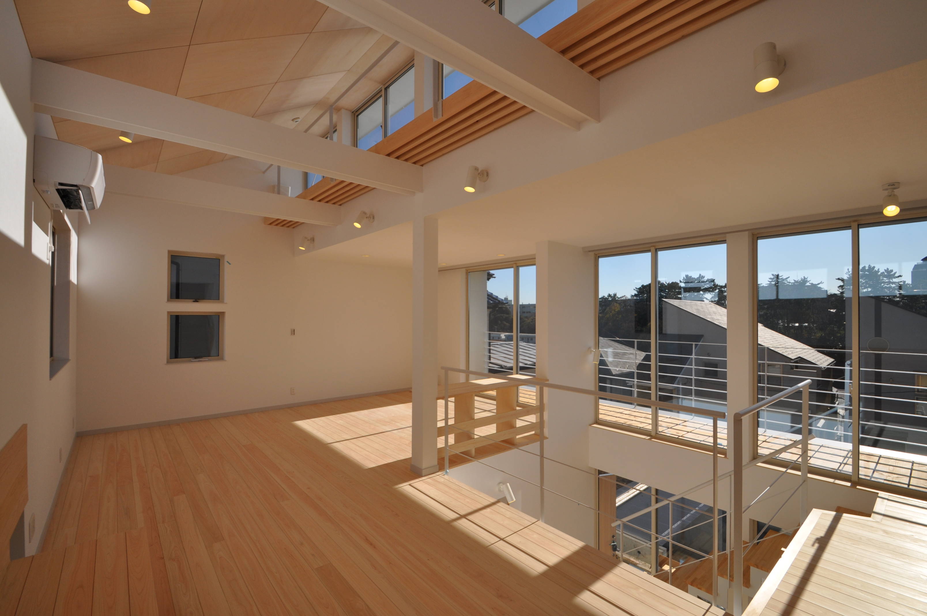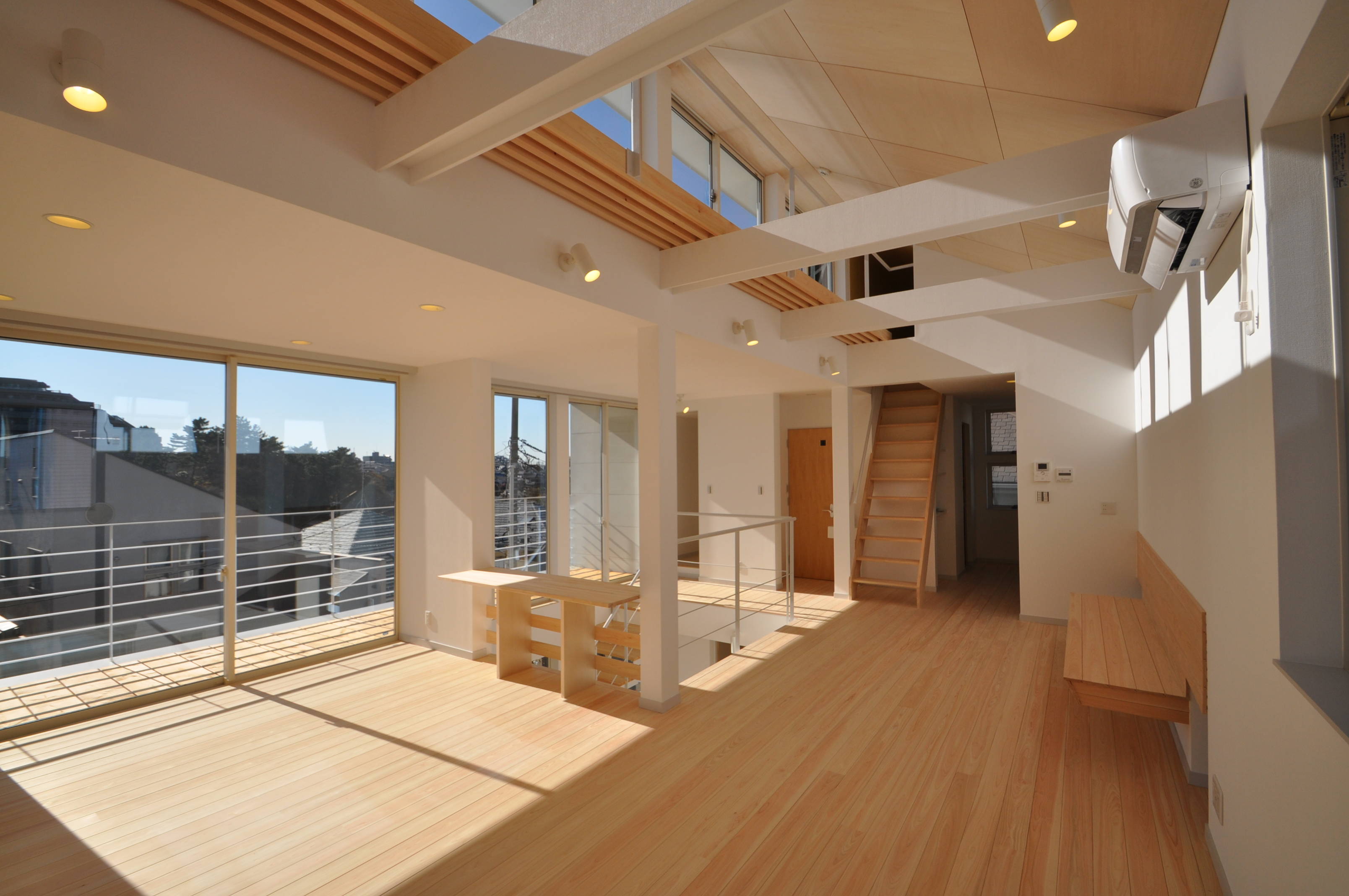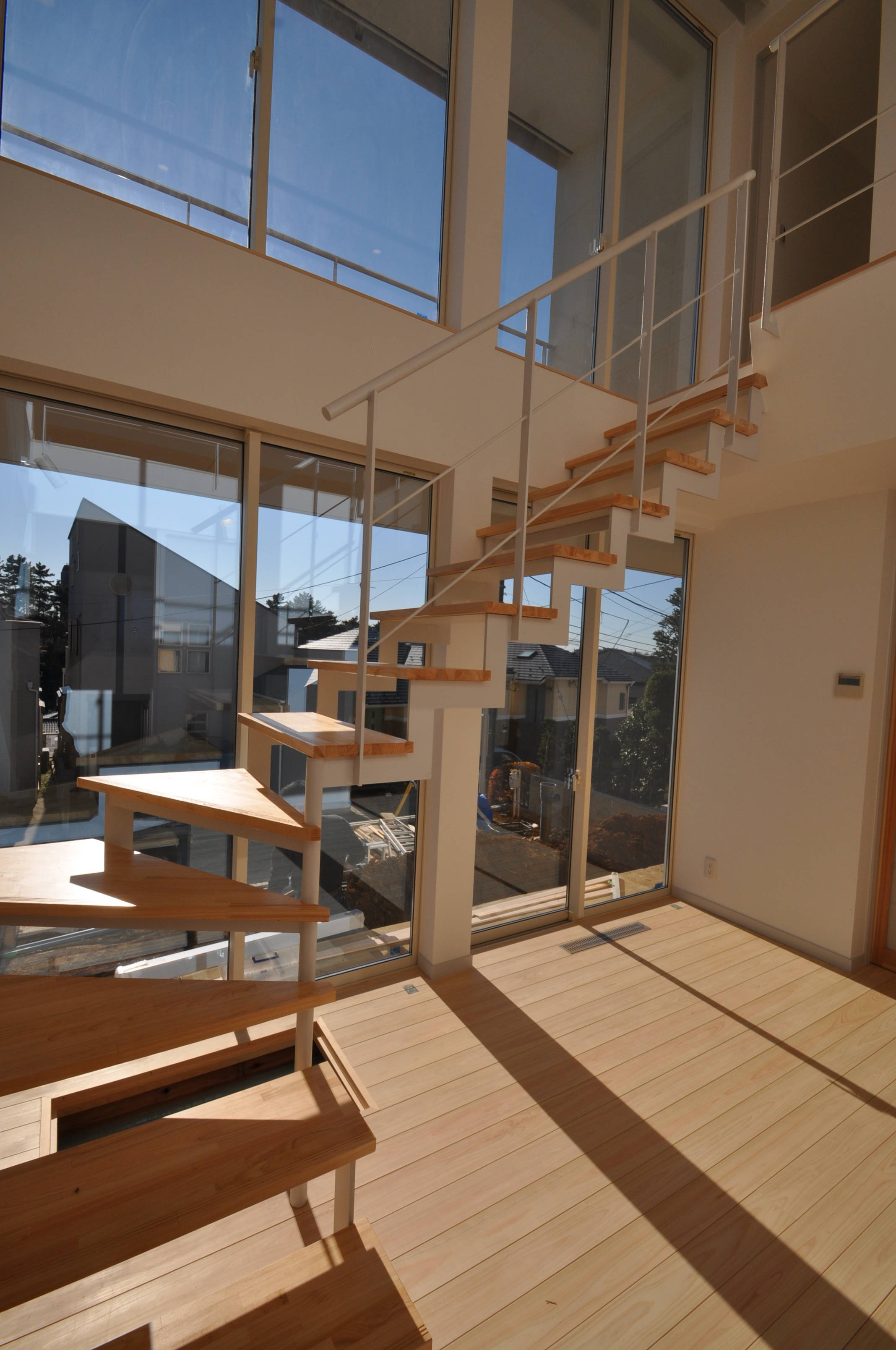 2階に計画したリビングダイニングと一体的な吹き抜け階段を家の中心に配置。吹き抜け空間は陽光たっぷりで明るく温かく、家の隅々まで陽光を届けてくれます。