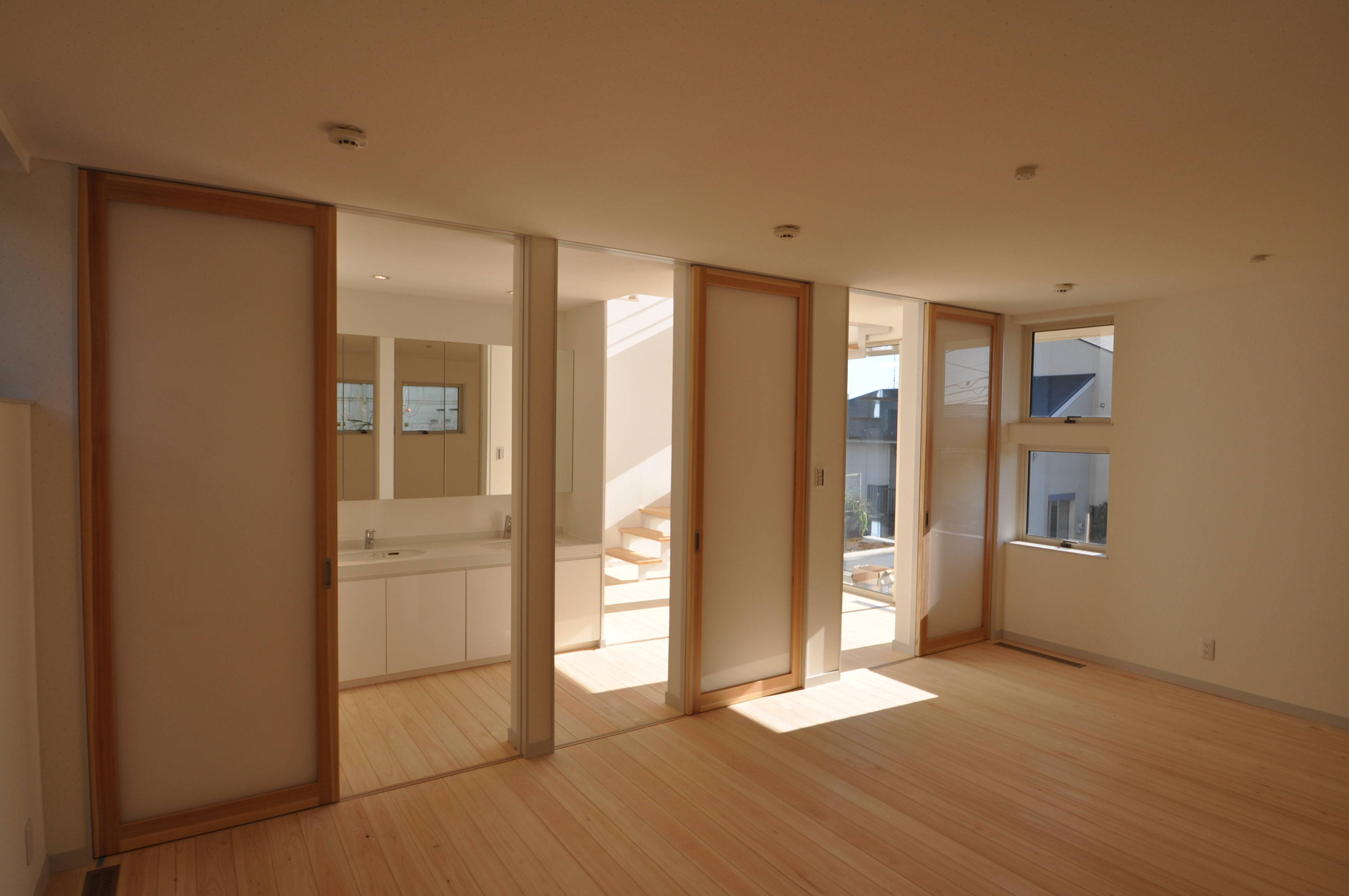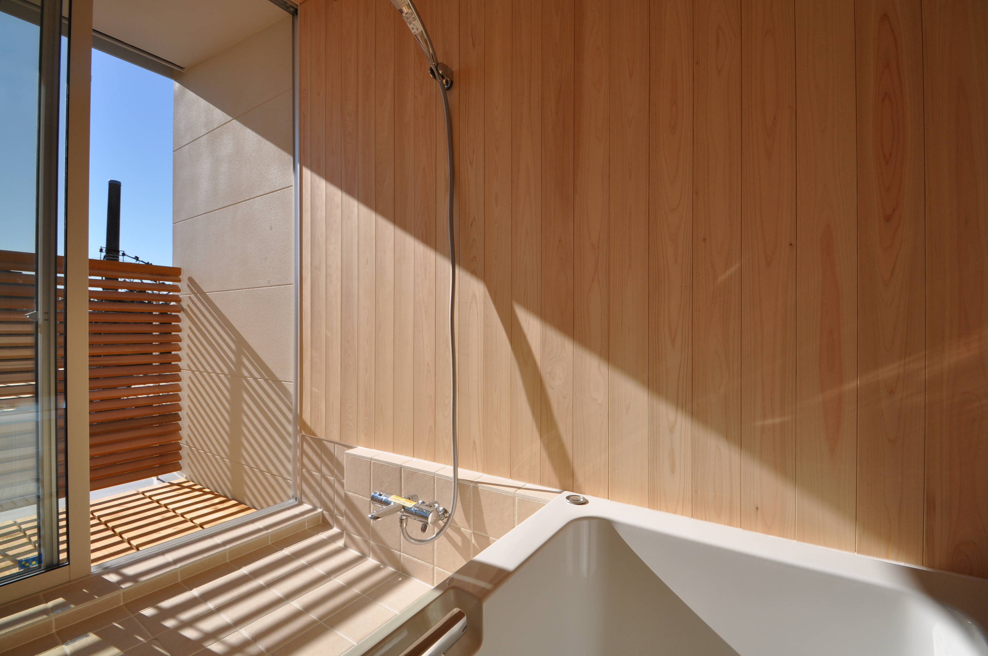 リビングダイニングは視線が遮られることなく、素晴らしい眺望を楽しめます。また、浴室からも同様の風景が望め、バスコートを介して解放感たっぷりで、建築主が求めた癒しのお風呂になりました。