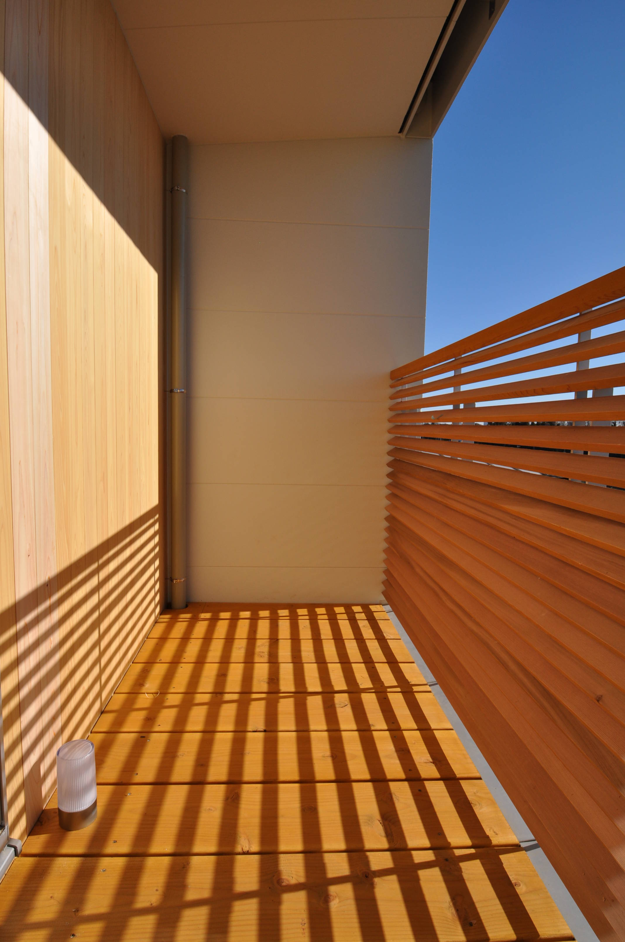 まず敷地の特徴を最大限に活かすことを考え、手前に2台分駐車場を設け屋外階段でアクセスすることで、高低差を活かすように計画しました。