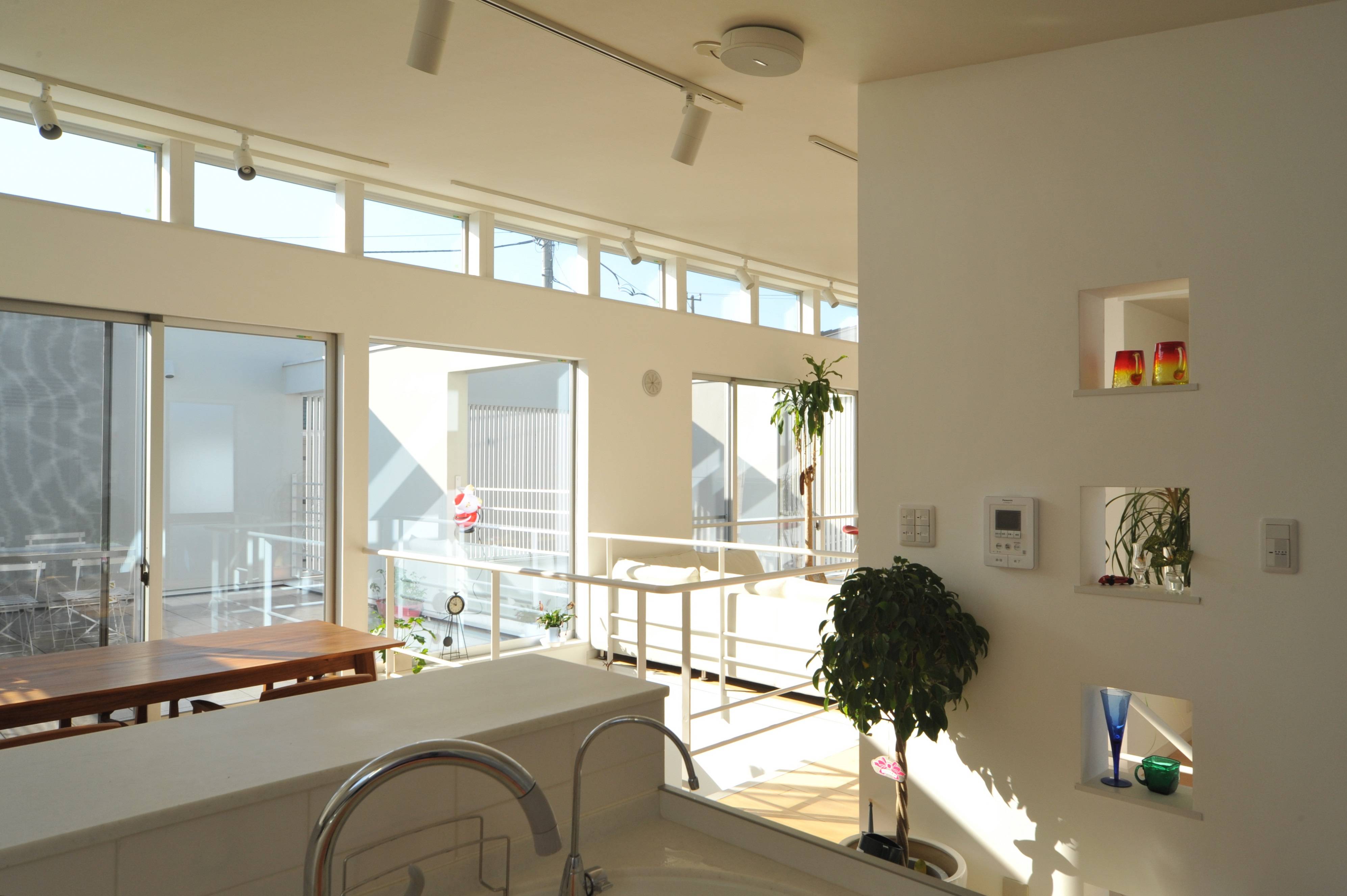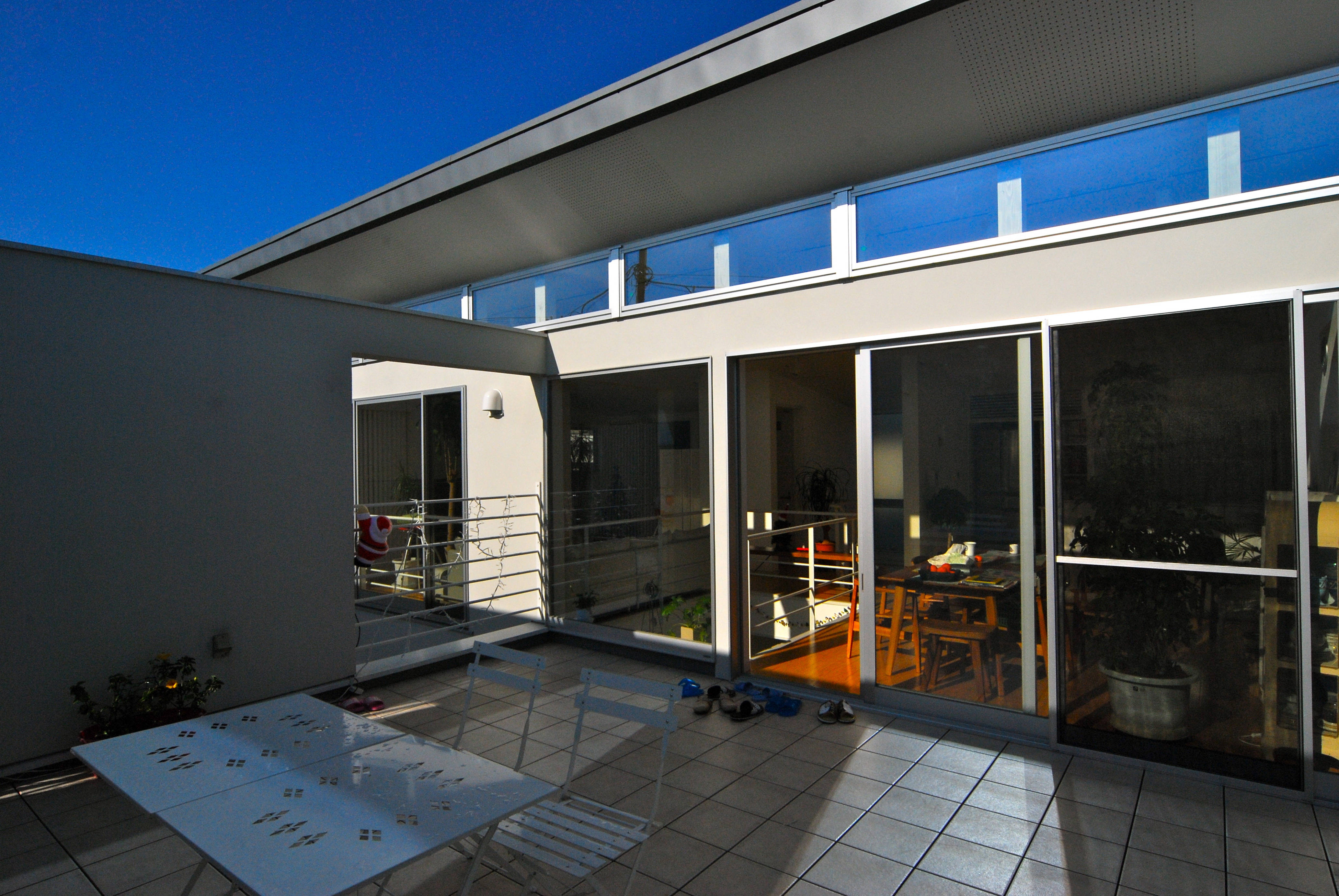 このライトコートは、風が吹き抜け、光を通し、雨が降り注ぎ、住む人に優しく時間の移ろいを伝えるプライベートな屋外空間です。