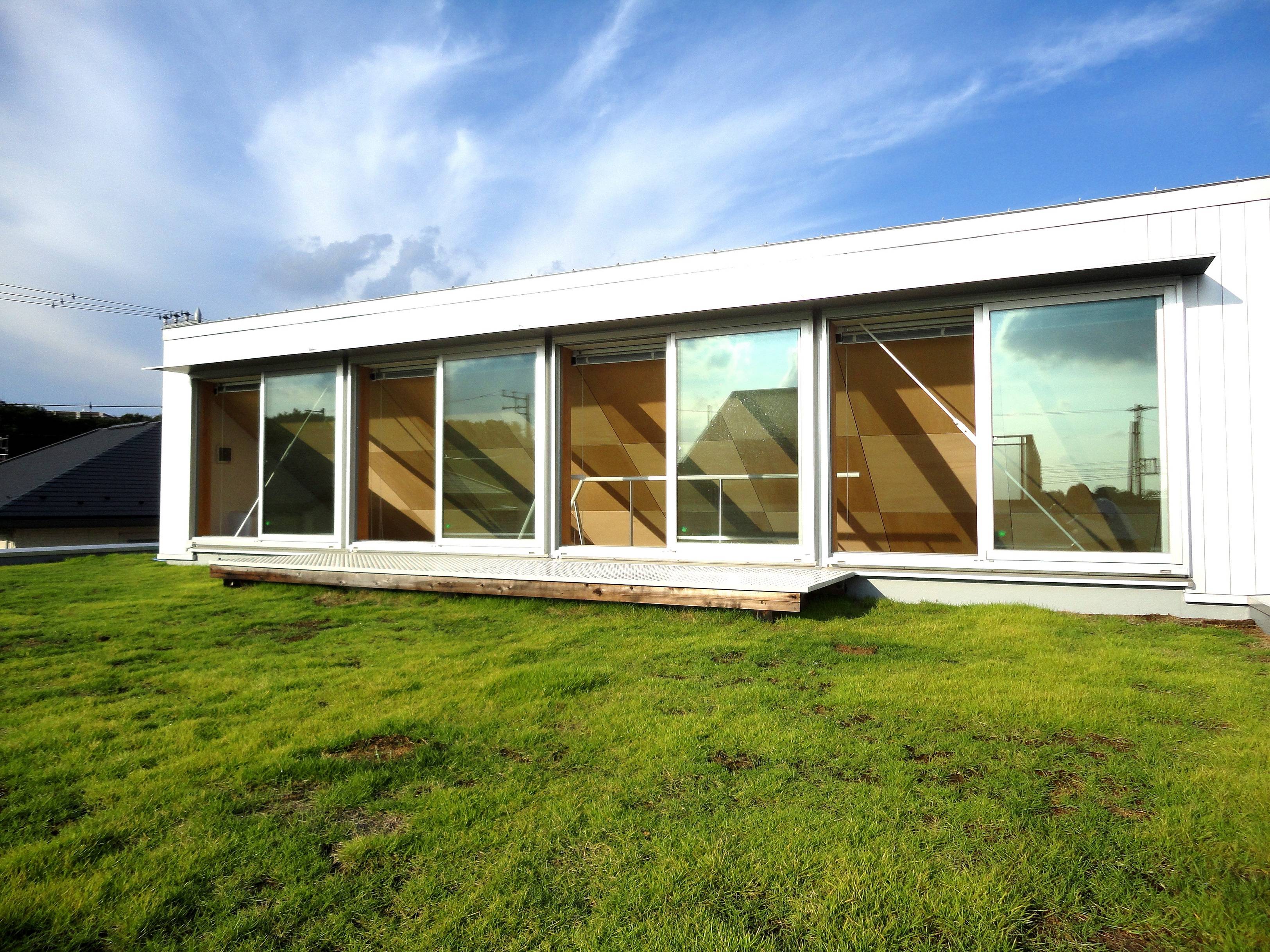 屋根緑化や効率的な風の通り道の計画、床下からの暖房による穏やかな温熱環境の実現など、環境に配慮した住まいです。