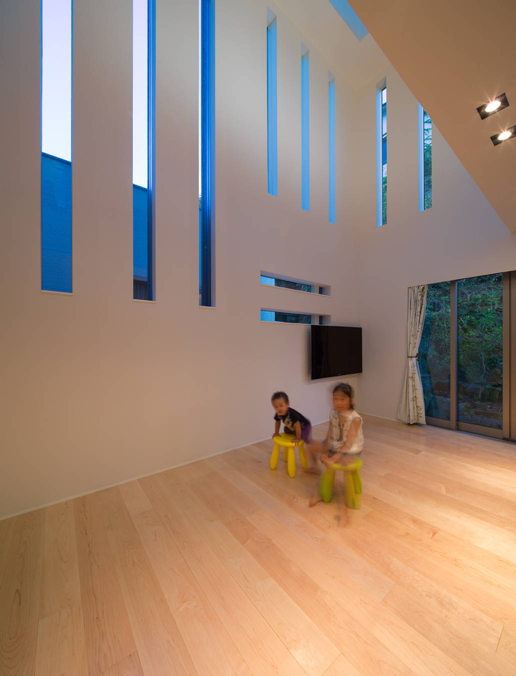 さらに、南東からの光と風を流すことができるように、東側からみて平屋建ての祖母の家の後ろに高さを強調させたスリットの窓を取り付けました。