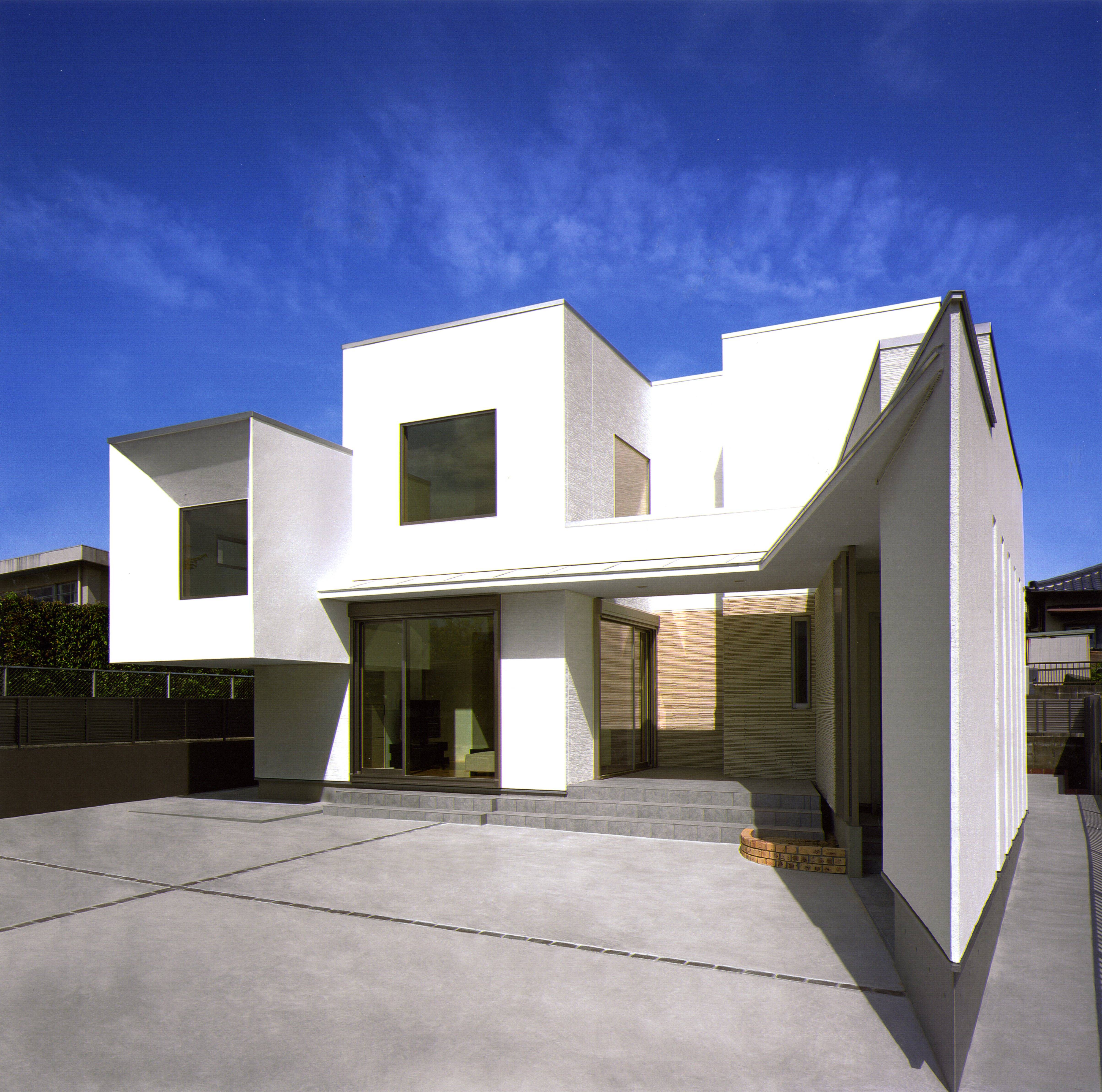 南側は道路から建物を離して配置することで内部にも明るい光を取り込む様に、東側は三角形に長く突き出したアプローチの壁が2階建てのアパートからの視線を遮る様に計画しました。