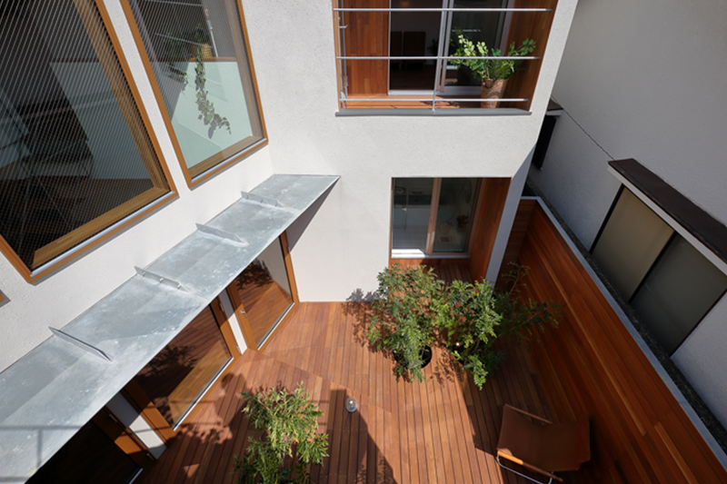逆の東南側の中庭に大きく開いて光をそちらから取り入れる構成となっています。