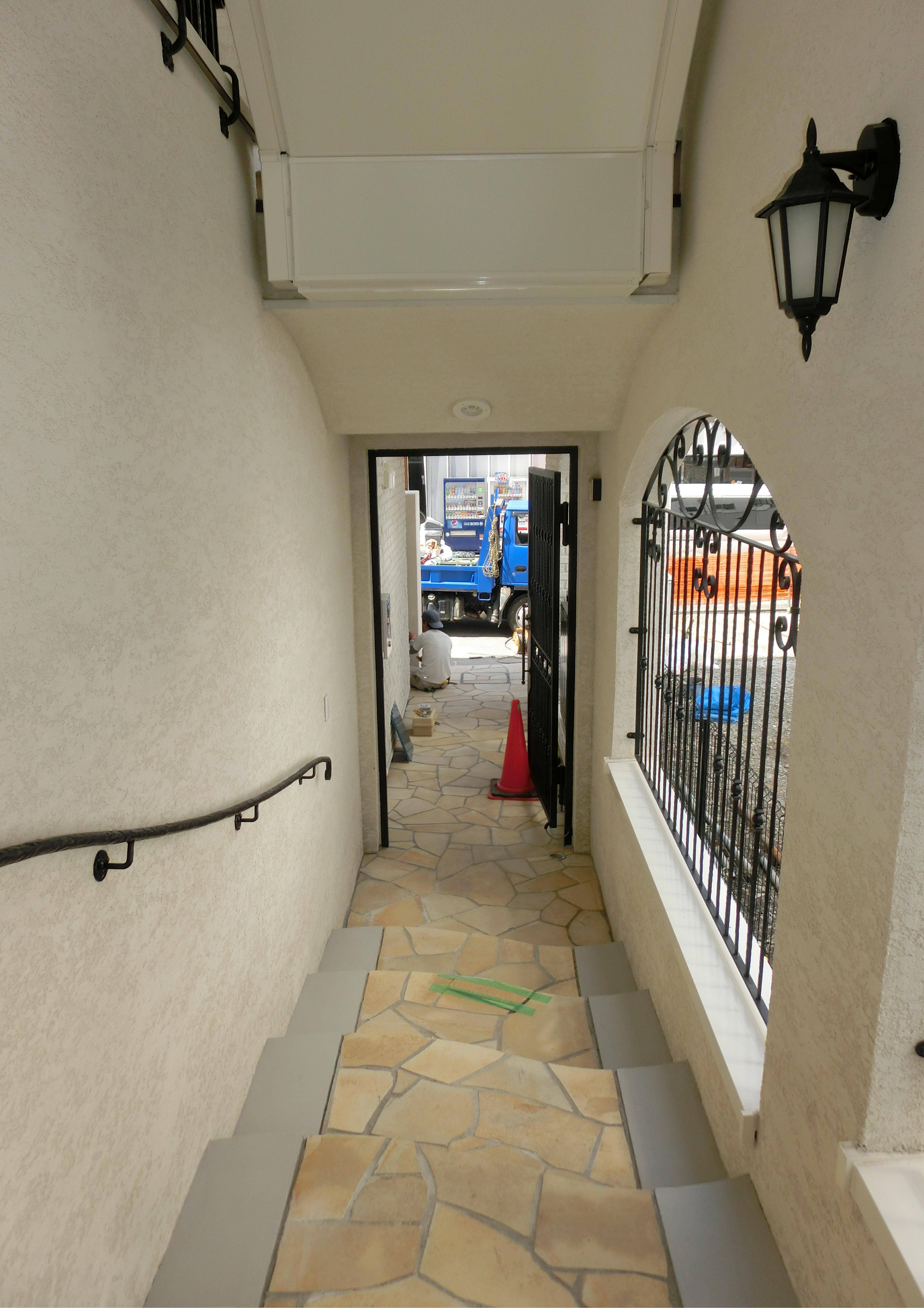 建設地は駅前の商店街。老朽化した旧店舗を建替える際、協同したプロデュース会社の提案により『主店舗+賃貸小店舗+共同住宅』というコンプレックスとして計画を進めることに決定し、建て主様を交えた入念な打ち合わせを重ねていきました。建て主様のご希望は商店街を活性化する魅力あるデザインとすること、ヒューマン・スケールに適した親しみやすいボリュームとすることでした。旧建物が木造二階建であったこと、工事にかかる費用を無理なく回収できること等を検証し、規模については最終的に木造三階建店舗併用共同住宅とすることに決定しました。平面計画は商店街側の北道路に狭い間口が面し、直交する西狭隘道路側が間口側の約3倍という敷地の特性から、1階は北側にメイン店舗とアパートメントの出入口、西側には小店舗と事務室出入口を配置、2/3階のアパートメントのバルコニーは商店街からの視線と干渉しないよう、西狭隘道路側に向けて外壁面より後退させて設置しました。エクステリア・デザインは以前訪れたウィーンのロース・ハウスの明快でありながら無機質にならないファサードをベースに、ガウディ・ギマール・ホルタ等の曲線階段、フィラデルフィアのエルフレス小径の魅惑的な路地等の様々なイメージを街並に溶け込むように纏め上げ、建て主様から高い評価をいただきました。