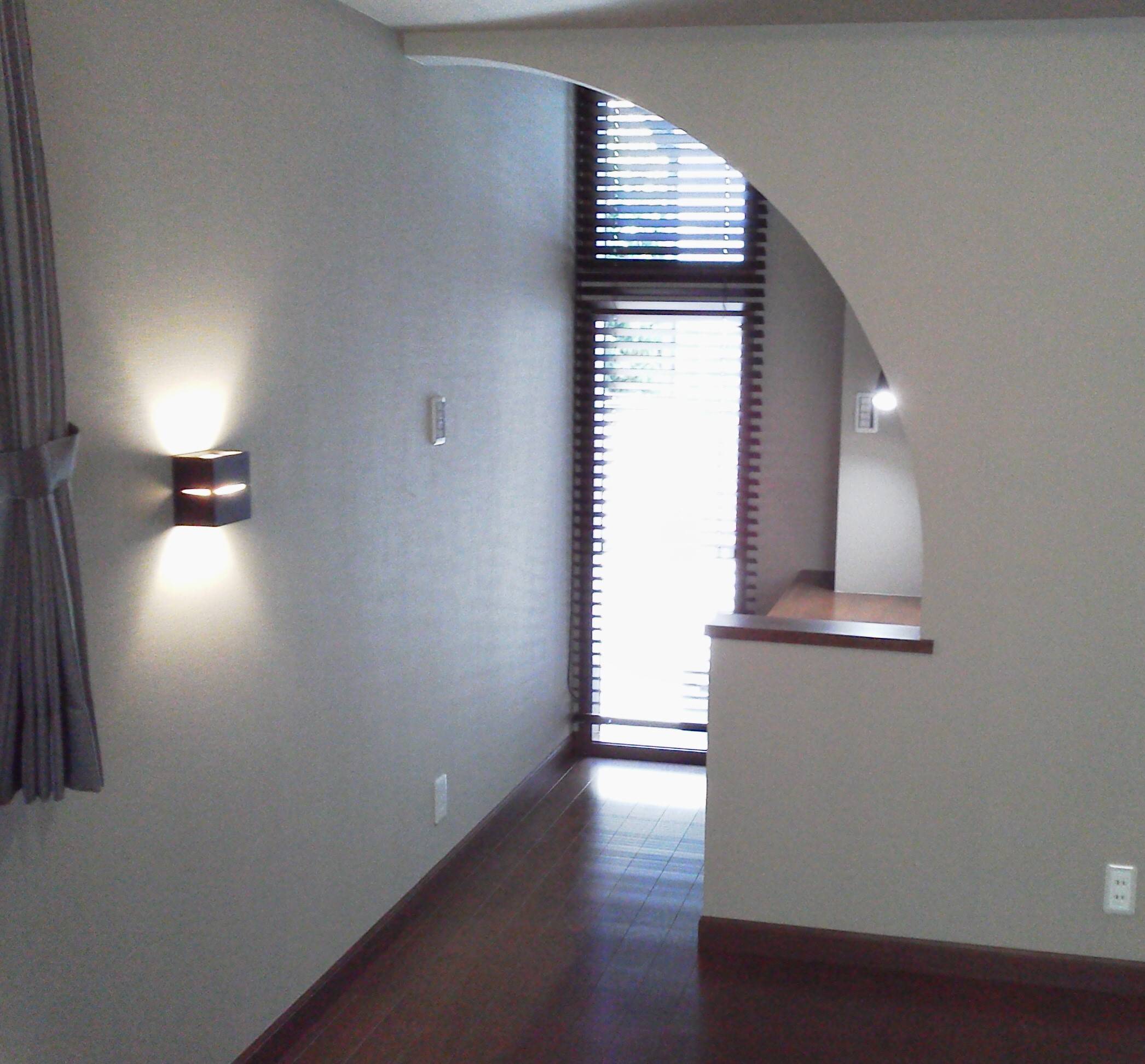 都内の高級住宅街でのミニ開発による狭小旗竿敷地における計画です。通路部分を除く有効宅地面積は約60㎡(18.4坪)。その中で平・立面的に最大限のボリュームを、というのが第一条件。幸いにも南隣地がカーポート/庭であるため開放性が確保されており、道路からの視界も十分開けていることから採光性に優れた平面計画、街並みに映える優れたデザインという条件が次々と定まっていきました。先ず方位角度から高度斜線制限で規制されるボリュームの限界範囲を検証し建物の屋根勾配を決定、その後はベースとなるプラン・エスキースを作成し、室内空間/外観デザインを検討しながら具体的な形に纏め上げる作業に移ります。ここではパターン/ヴァリエーション図やスケッチを用いて建て主様と繰り返し打合せをしていきました。奥様がクラシック・ピアノを嗜まれていて欧州の旧い家が好みということから、エクステリア・デザインのポイントをここに定めました。インテリア計画はメイン・スペースとなるLDKで、平面的な広さの制限を立面的な拡がりでカバーしていく心躍るような空間造りを提案。ムーアやヴェンチューリ、スターンといった米グレイ派建築家の住宅作品にインスパイアされています。天井の構造を兼ねたアーチは評価いただけるか多少の不安もありましたが、外観共々出来上がりには大変ご満足していただきました。