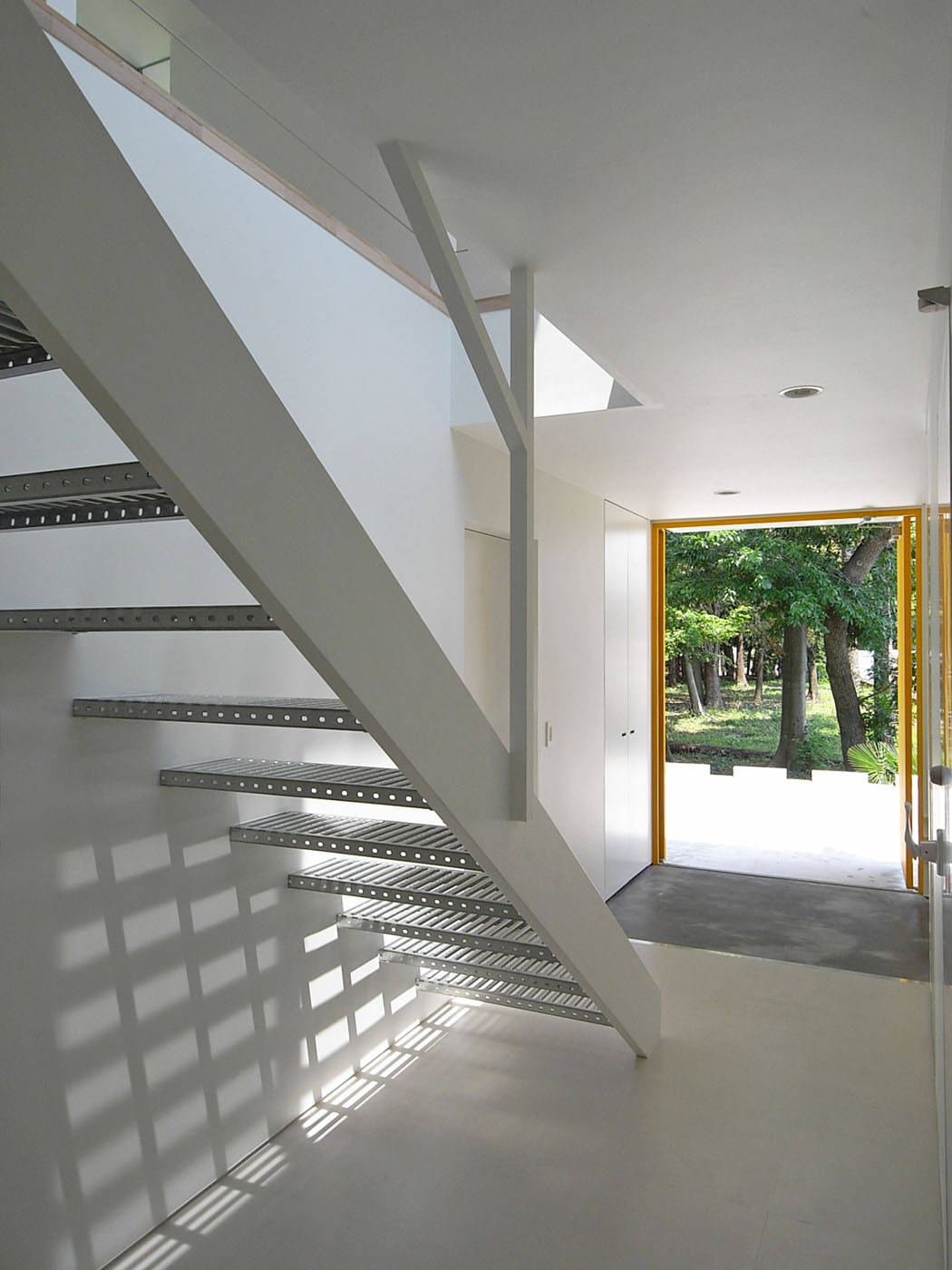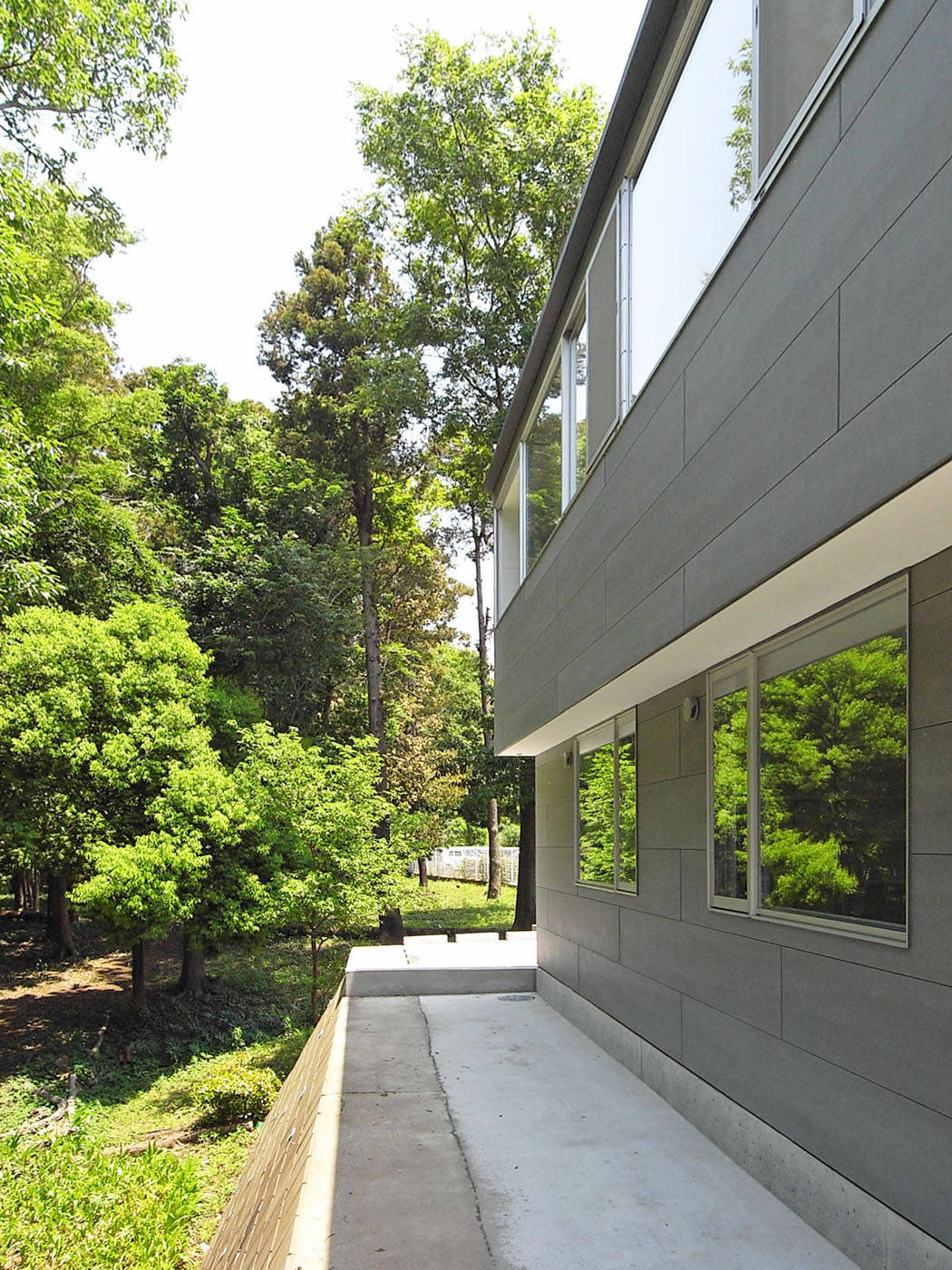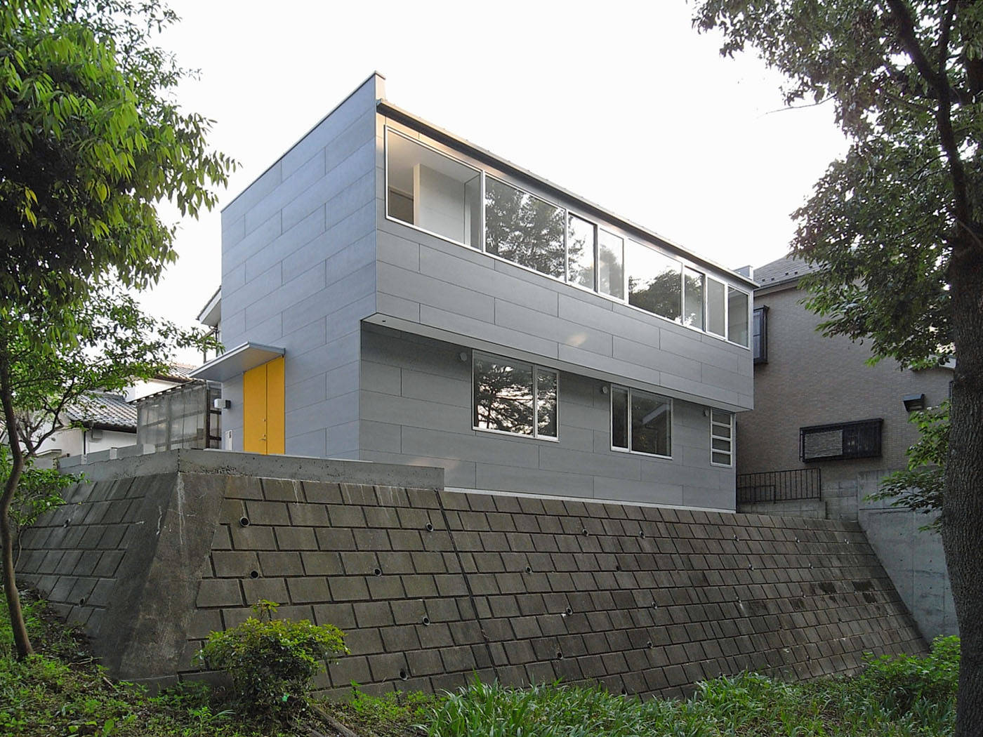 北向きの崖地という一見不利な敷地ながら、緑豊かな景観が楽しめるという利点を活かした住宅。