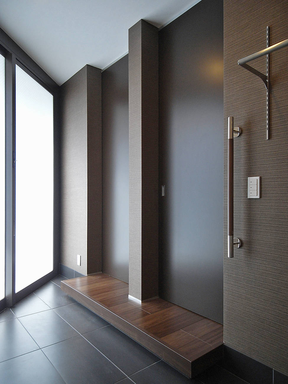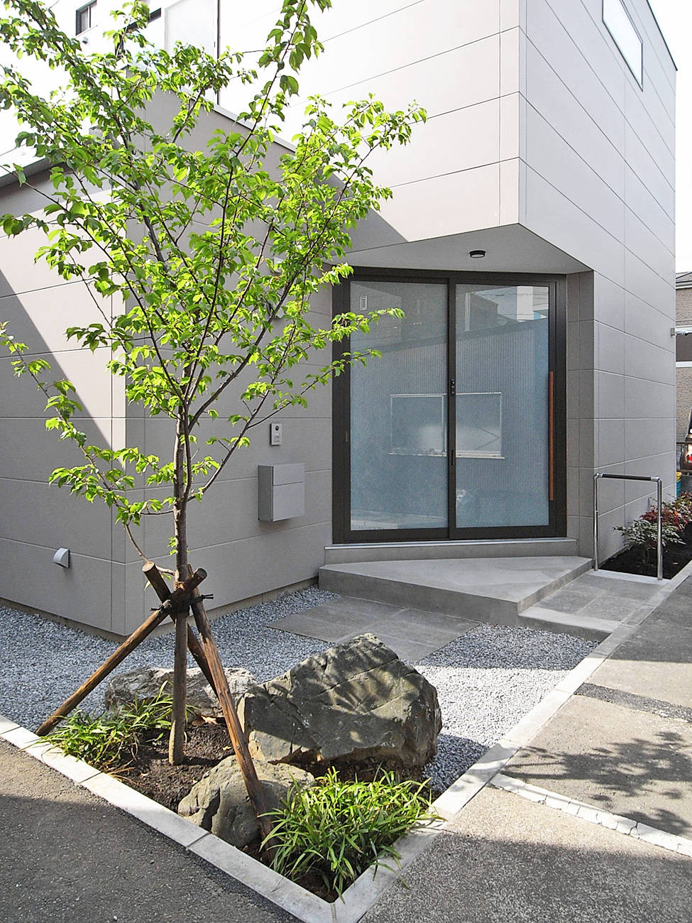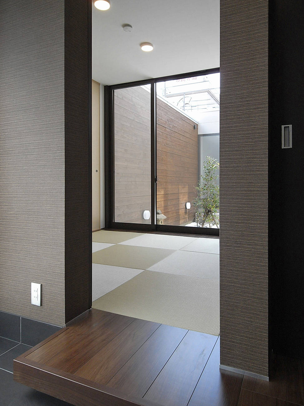 玄関は裏通りに面する位置にあり、応接用の和室につながっている。