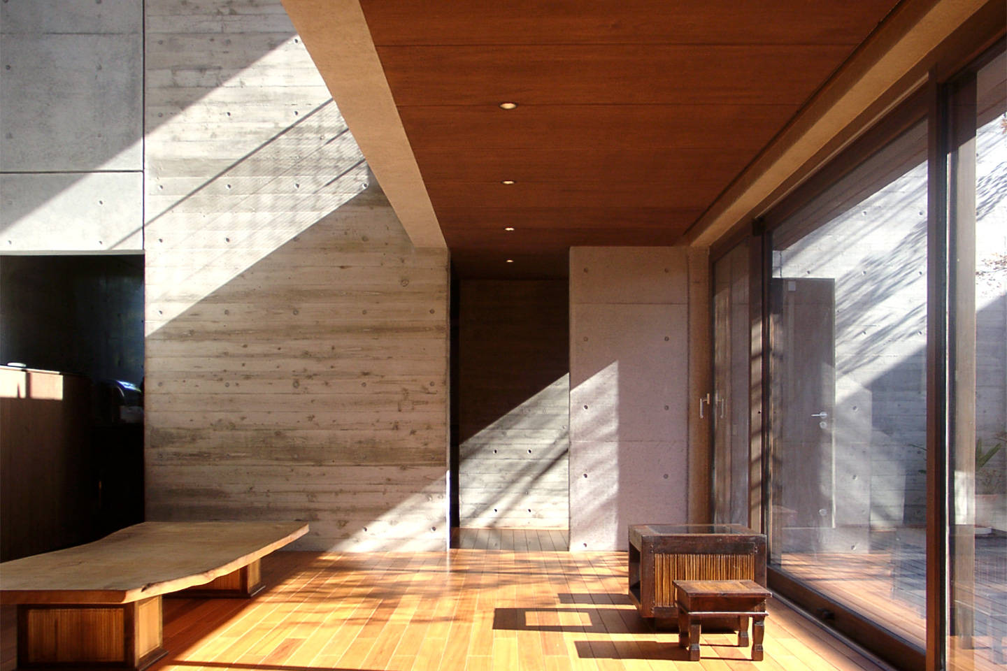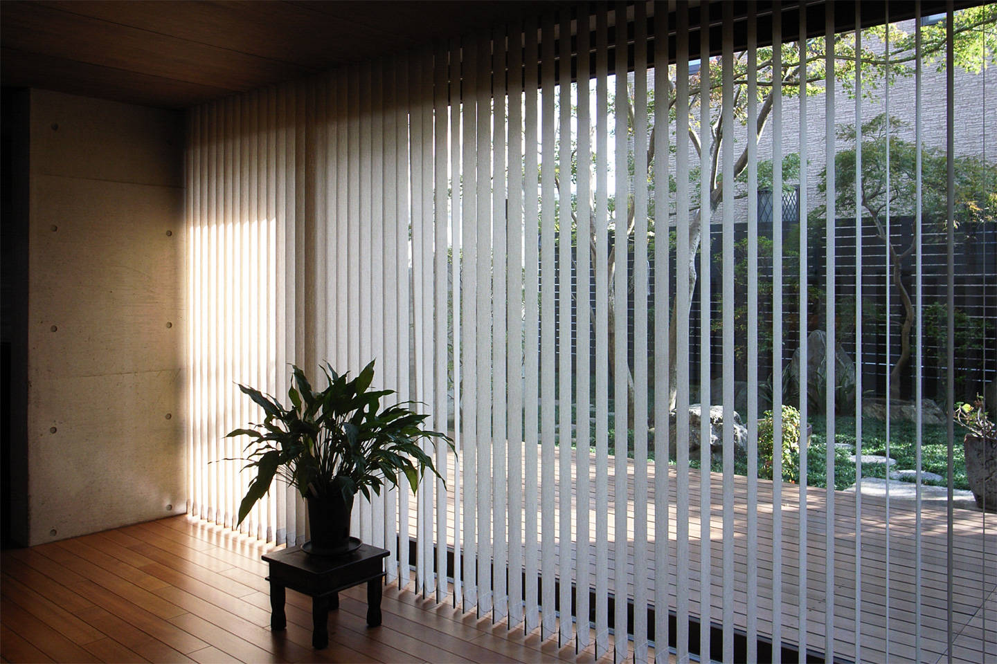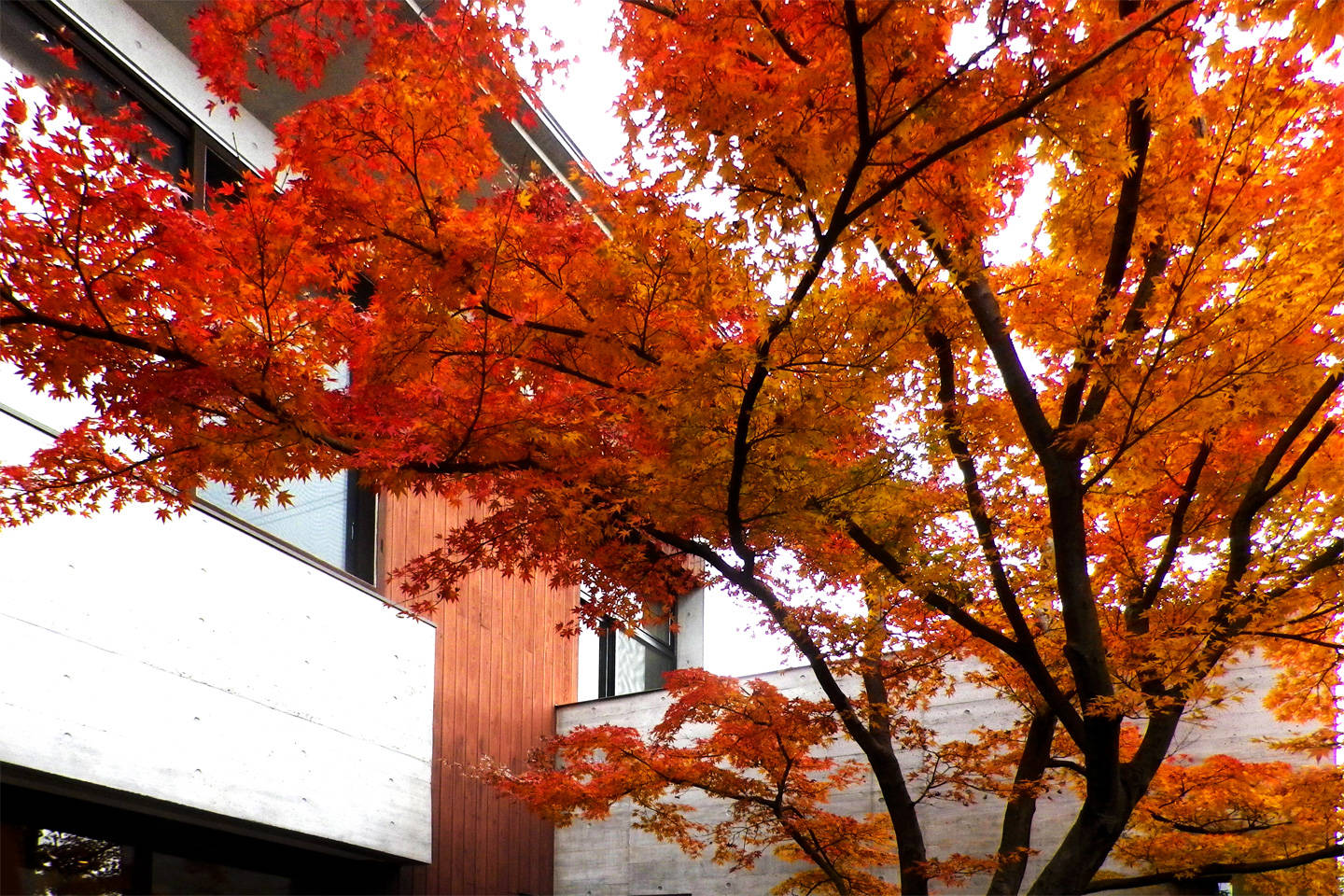外部から見ると寡黙なこの建築は、大きなもみじが植えられた中庭と、
