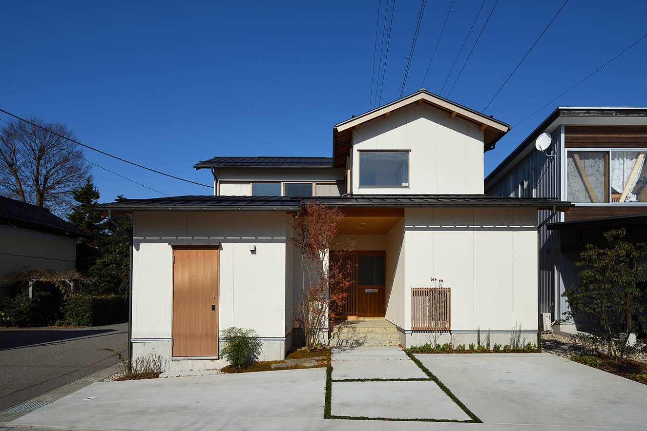 敷地はのどかな集落の一角にあり、外観は近隣の町並みに馴染むよう、形や色合いに配慮しています。