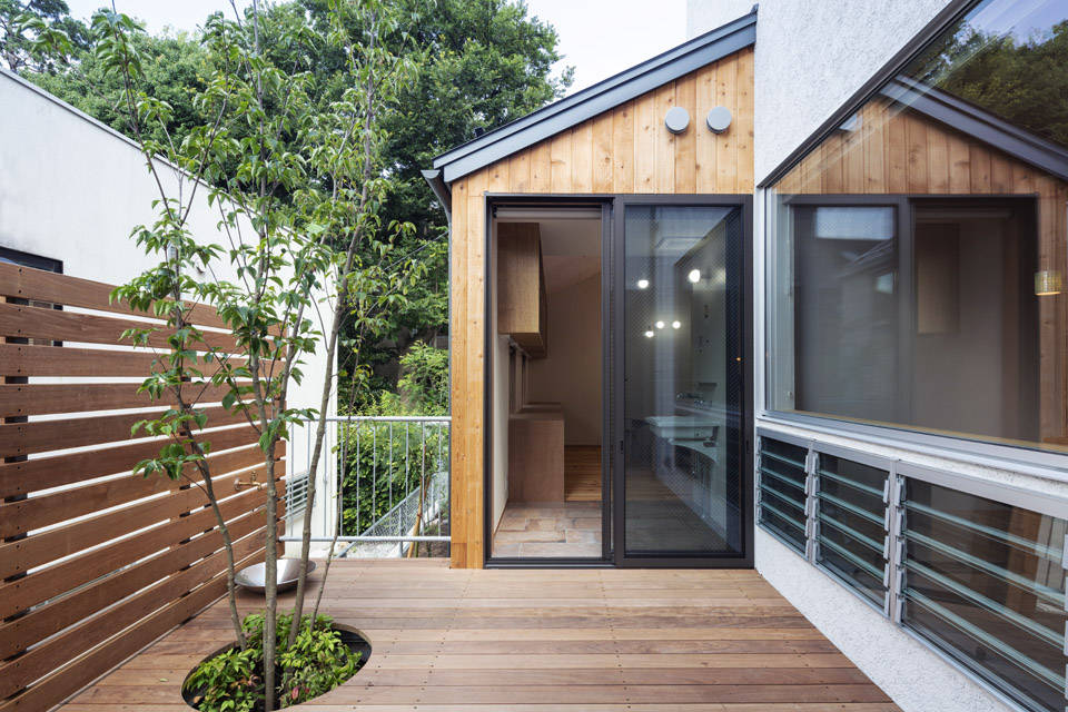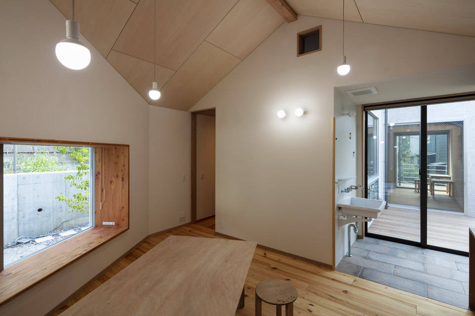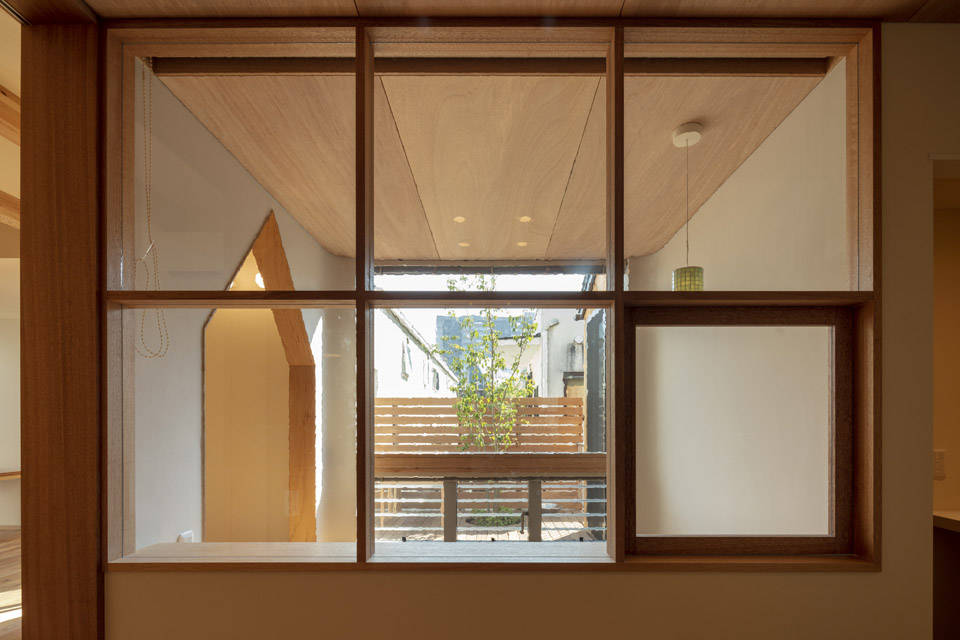 そこで、効果的な位置に複数の窪みを設けて隣地との距離を確保し、窓の向きをコントロールしました。