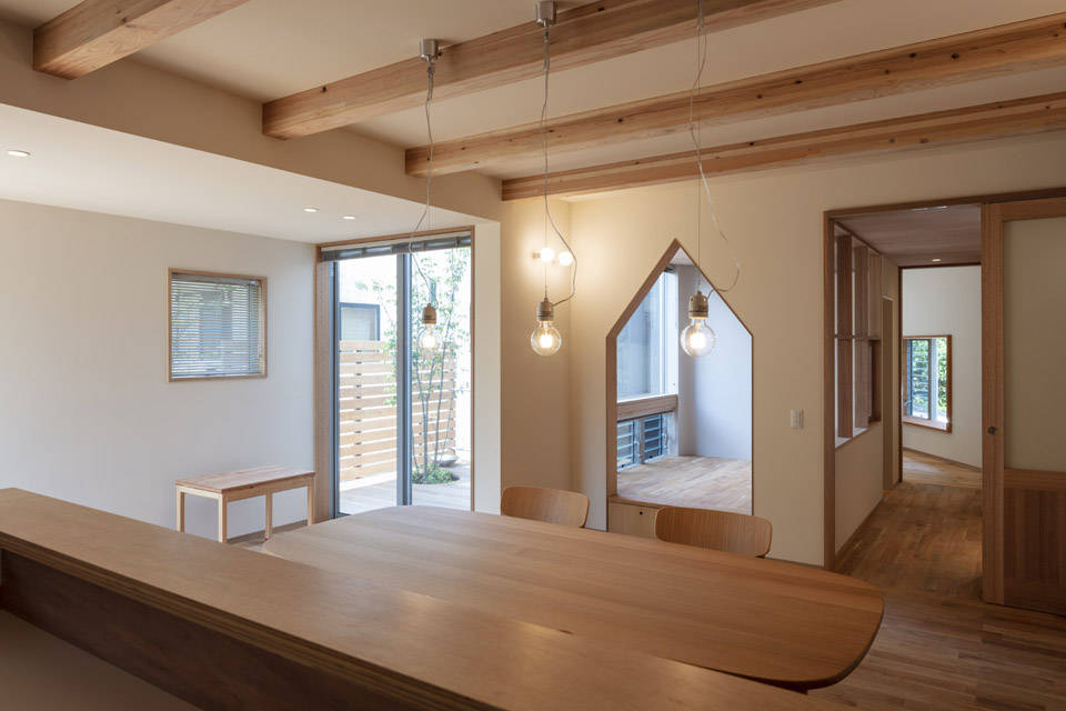 その結果、朝起きてから陽が沈むまで、さまざまな方位に向けたどこかの窓から光が差し込み、風が抜ける空間が実現しました。