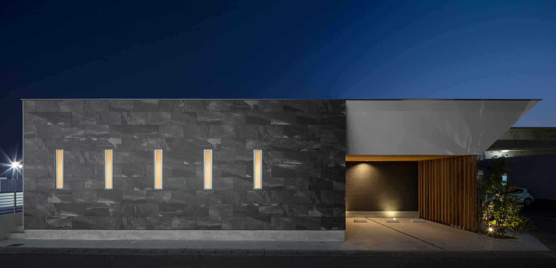 建築の造形的なデザインとしては、石材と木材の組み合わせを量塊(マッス)で表現しています。また、木材にはレッドシダーを用い、シャープで温かみのある外観としています。