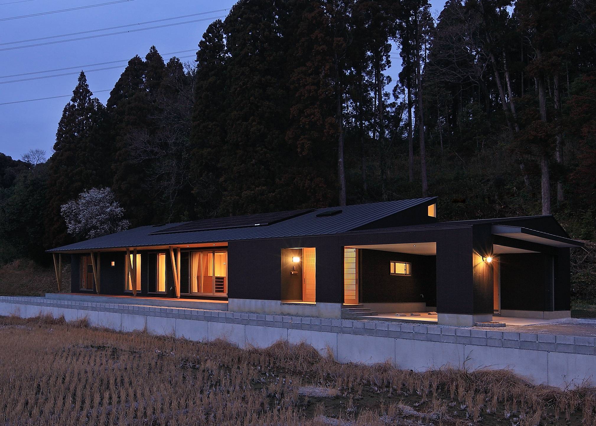 外観は,静寂な周りの自然に配慮した平屋の落着いたデザイン...