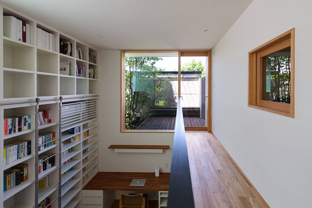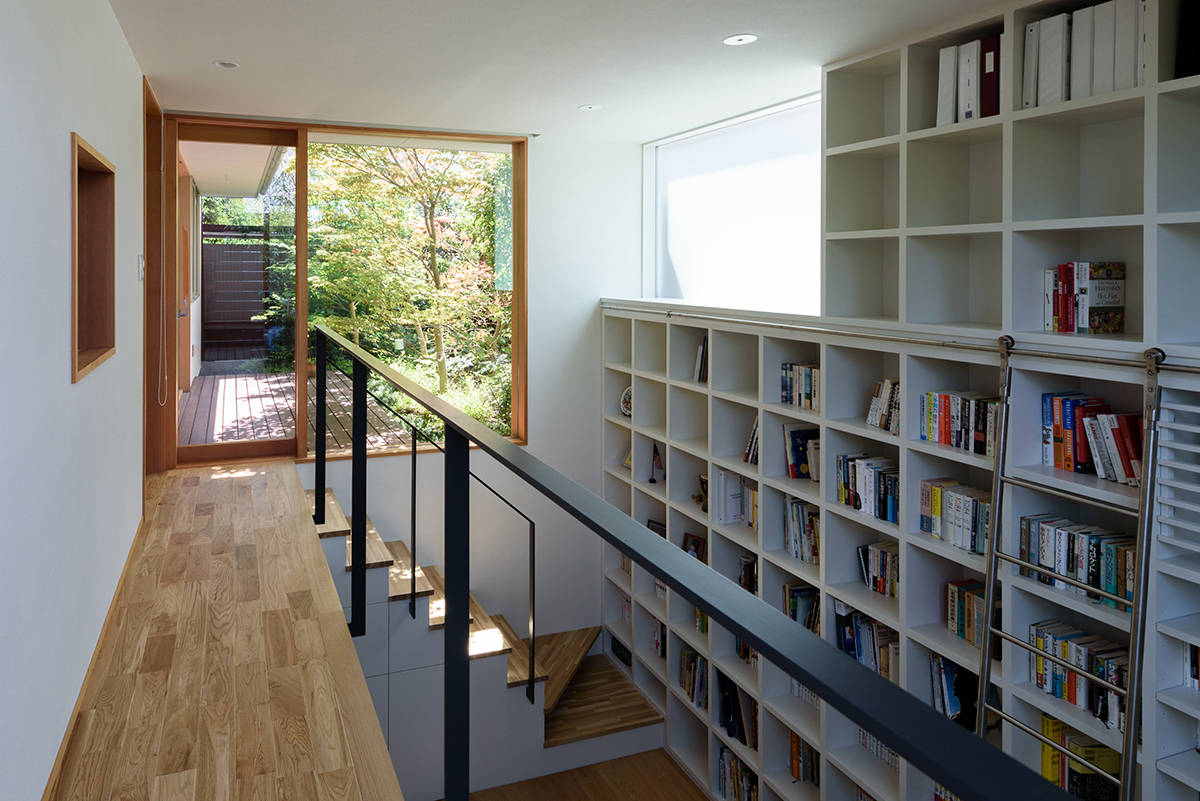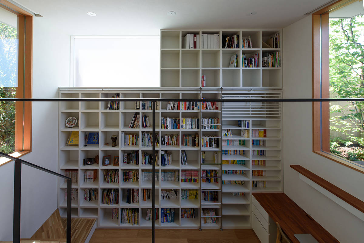 この家には、そんな要望から生まれた大きな本棚のある半地下の図書室があります。