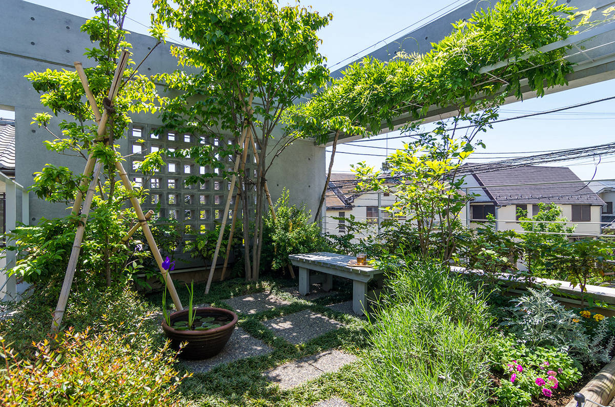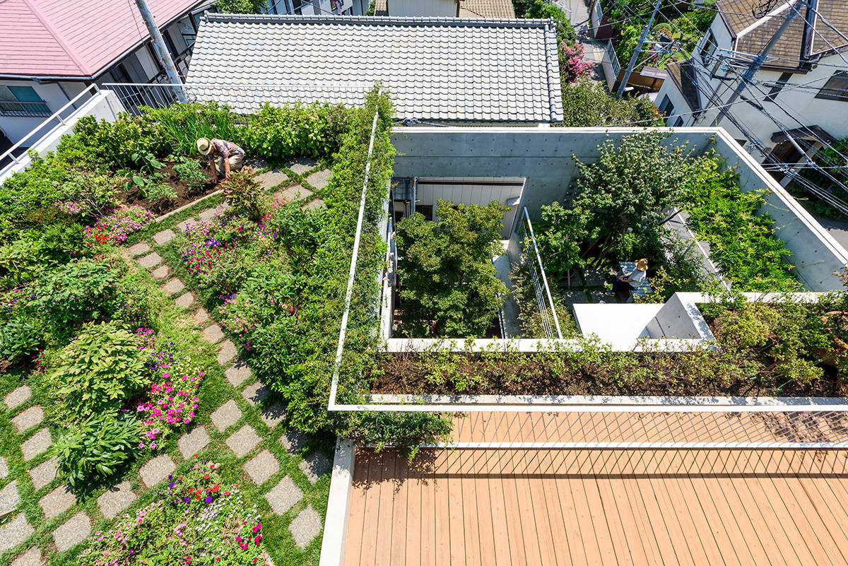 それぞれの庭は立体的に連続し、各世帯を穏やかな距離感でつなげます。