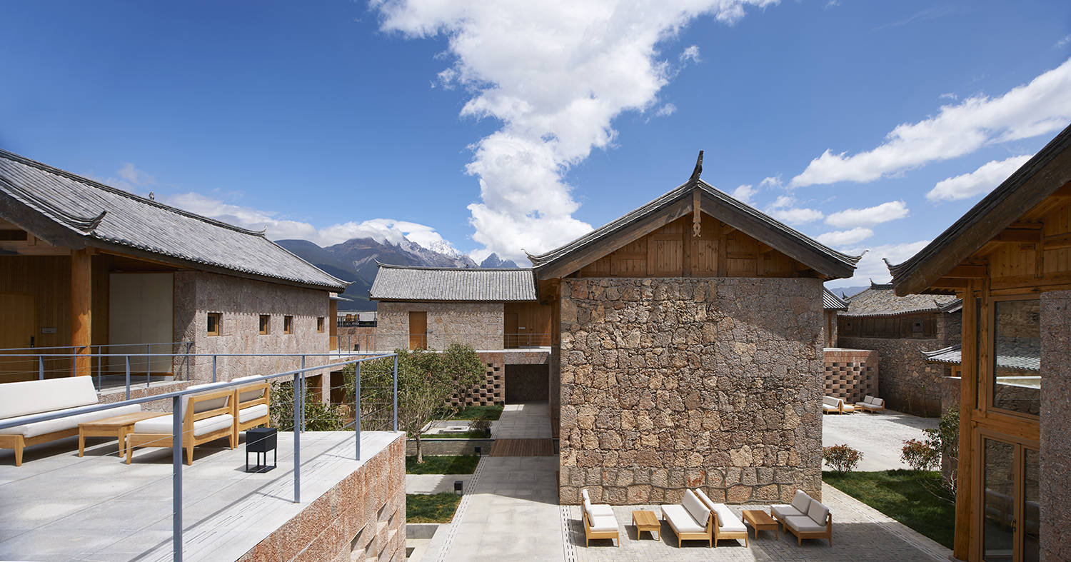 玉龍雪山を間近に望む白沙村に、現地の五花石の外壁が美しいナシ族の民家を増改築したリゾートホテルを計画する。