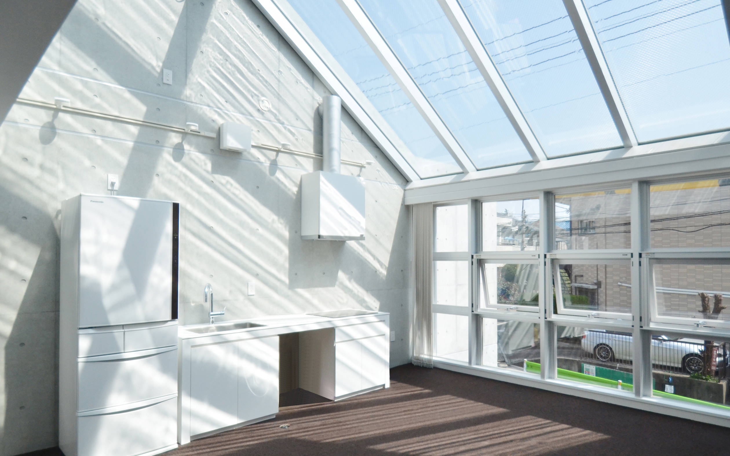 この賃貸住宅には1階に地域や会員に開かれた場としてラウンジ、アトリエ、 子育支援や保健相談等に利用される集会室が配されています。住戸の部分は、私と公との繋がりが段階的になるよう、 2階中央にラウンジ、東西に2つのホールを用意しています。建物全体は荻窪の落ち着いた街並に寄与すべく塀は設けず、 緑とゆとりを供給すると共に、変化と趣きに留意し、格子、RC打放、軒下空間などを手がかりにデザインしました。 どこかに自分好みの落ち付ける、楽しめる場所を見つけ、新しい自分を発見して頂ければと思っています。