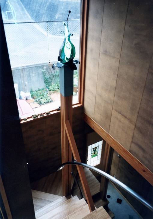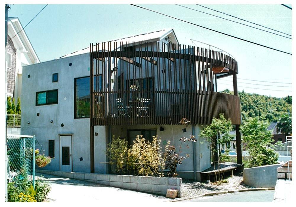 敷地は三叉路に面して少し飛び出し、東、南、西の三面に開いている。この特徴を活かして 「風通し」と「人通し」の良い開放的な家づくりを考えた。また家族の嗜好、意識を設計に活かすべく、家族で作ったコラージュ(切り貼り絵)からは「通り抜け、格子、水滴、開放的、和風と英国、モザイク、見上げる空、手作り、アート」などのデザインキーワードが読み取れた。