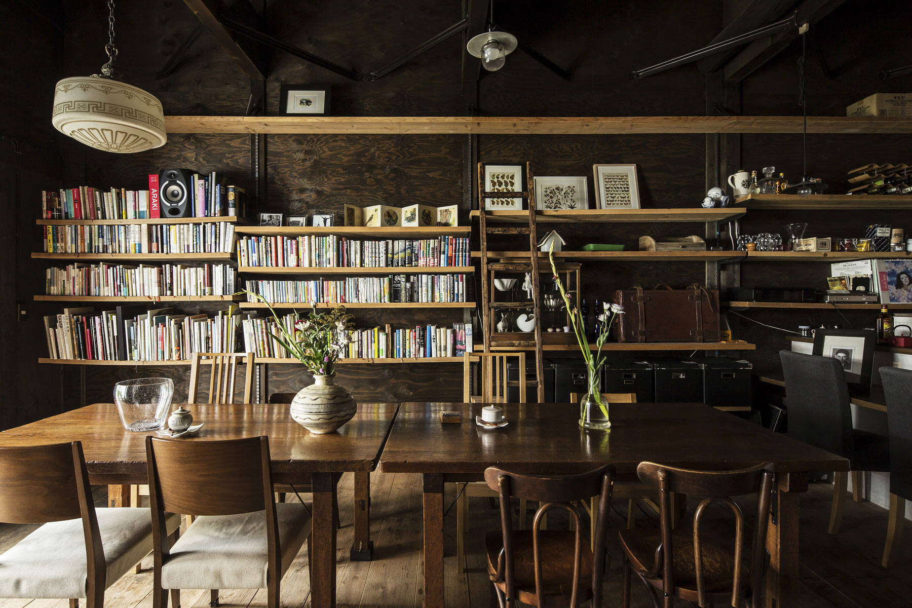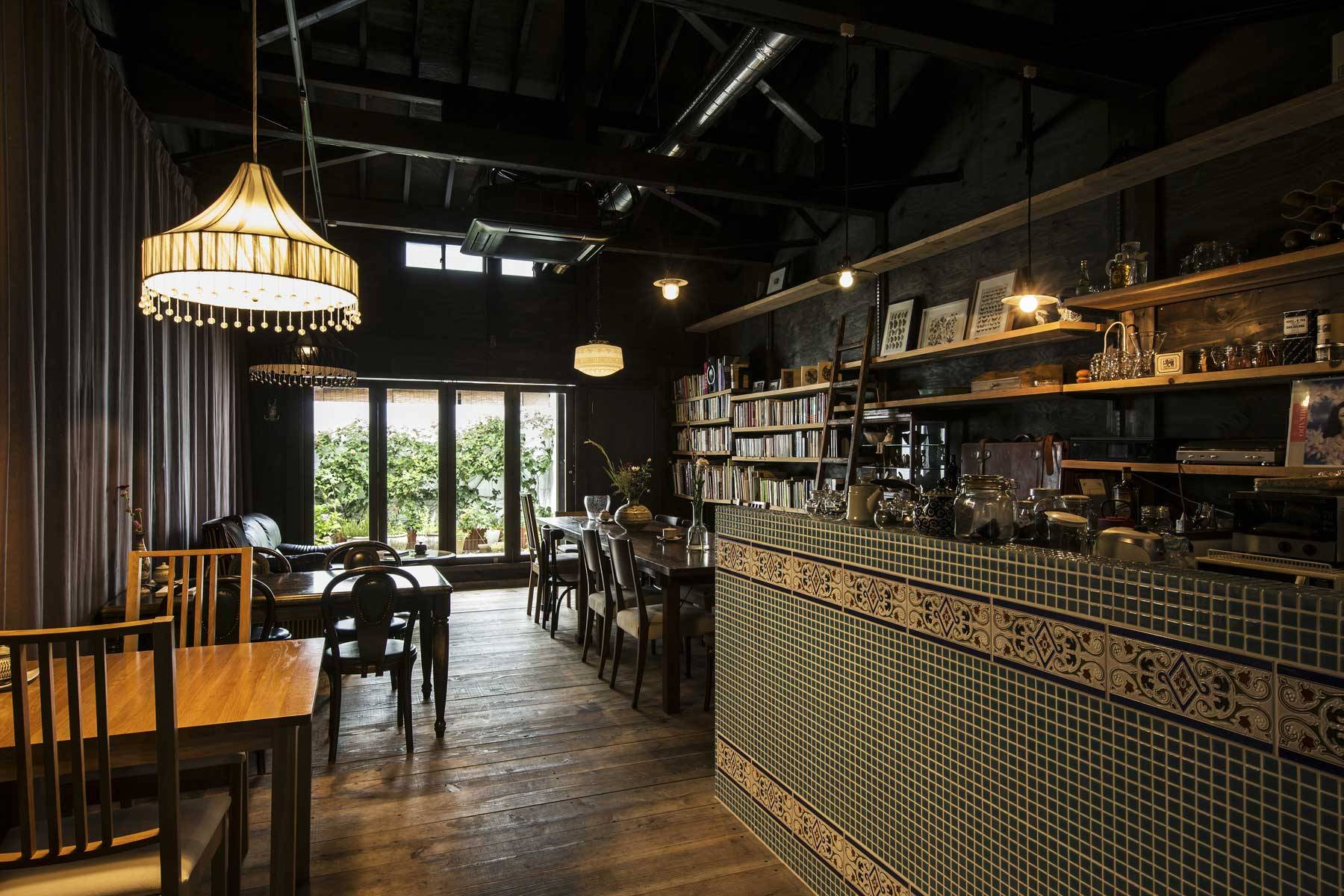 ならまちにある町屋を改装したブックカフェです。街に溶け込む静かな外観ですが、一歩足を踏み入れればオーナーが世界中で集めた古今東西のアンティークや書籍、音楽が詰まった濃密な時間が流れています。そんな古いトランクの中みたいなインテリアが、かつてシルクロードの終着駅だった奈良には似つかわしいのではないかと考えています。