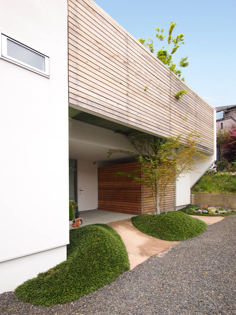 横浜市郊外の閑静な住宅地に佇む2世帯住宅は、隣地の借景を...