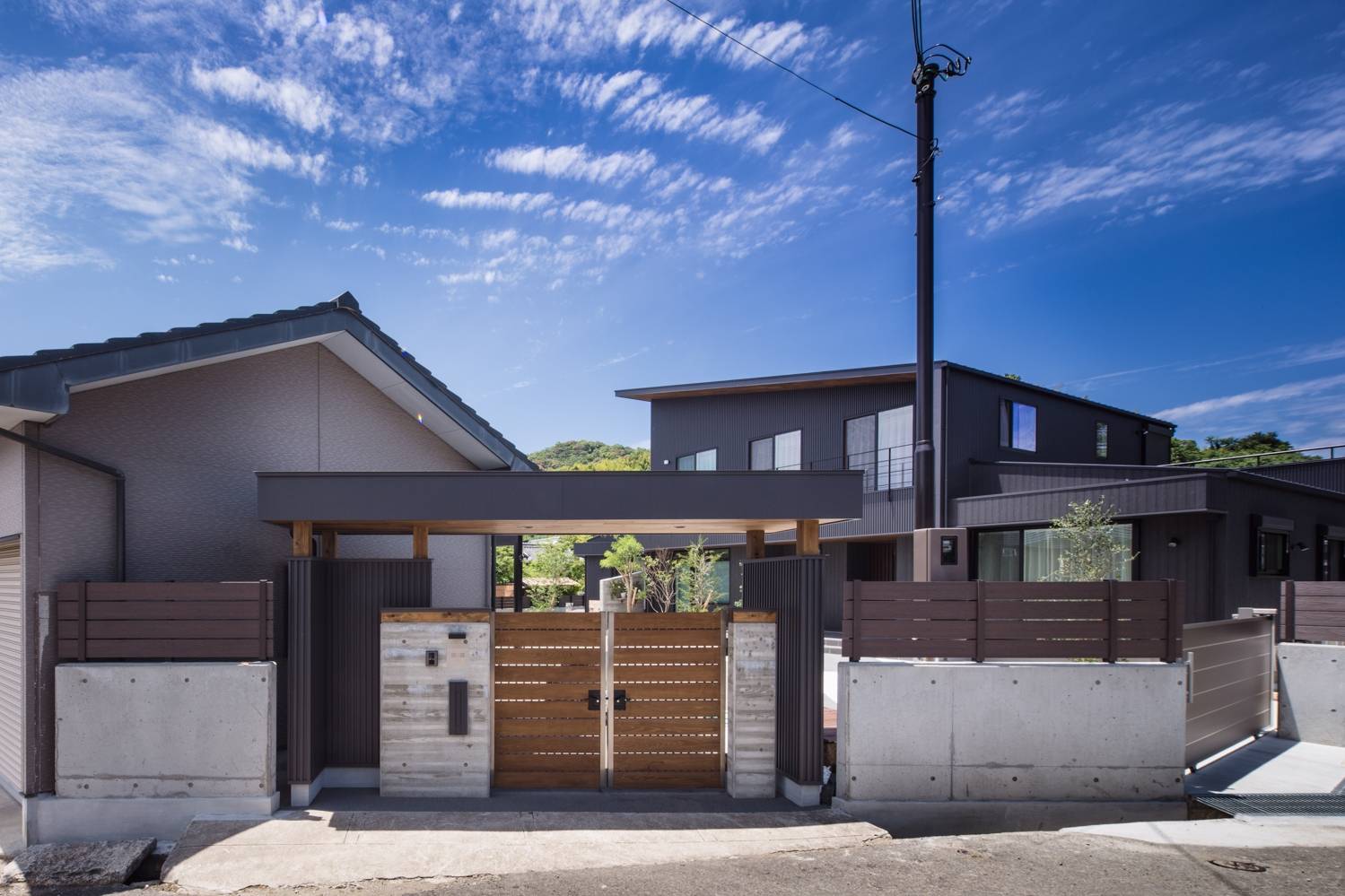 周囲には田園地帯が広がる長閑な集落での新築住宅。