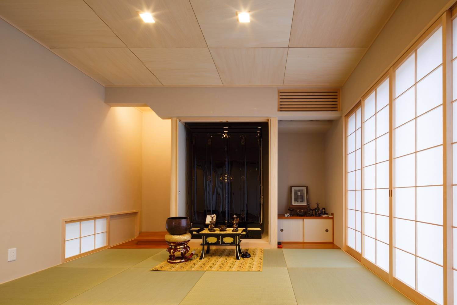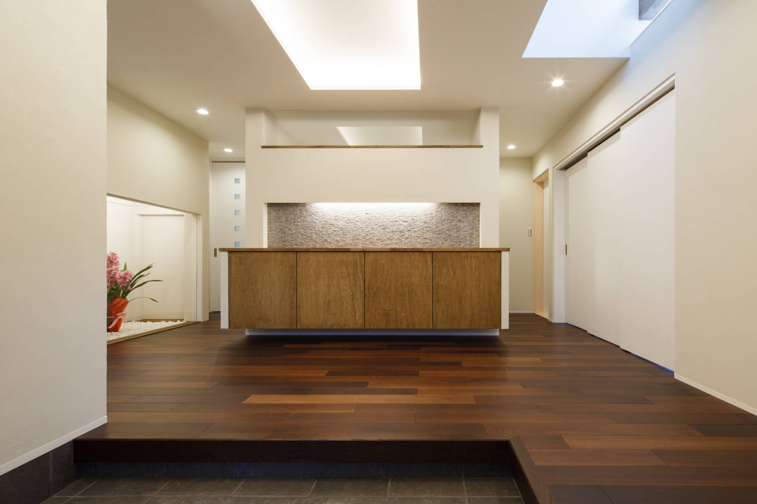 その他、応接の用途も兼ねる仕事用の事務室も併設している為、プライベートな空間が見えにくくなるよう動線にも配慮している。