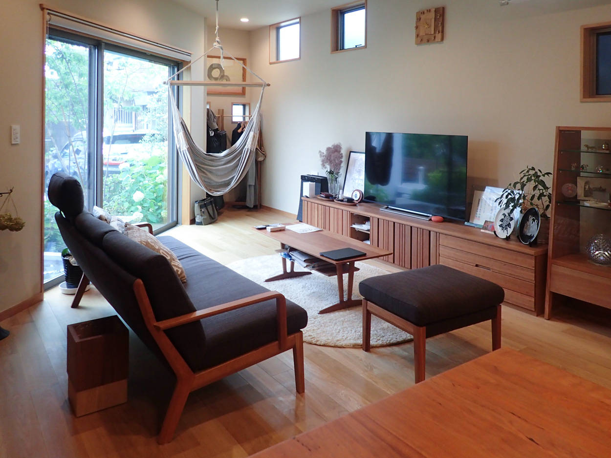 土間がどのように使われているのかずっと気になっていましたが、今回の訪問で、ロードバイクが吊されている様子を見ることができて、とてもうれしい気持ちになりました。それも、上下に2台。ご主人と息子さんの自転車だそうです。