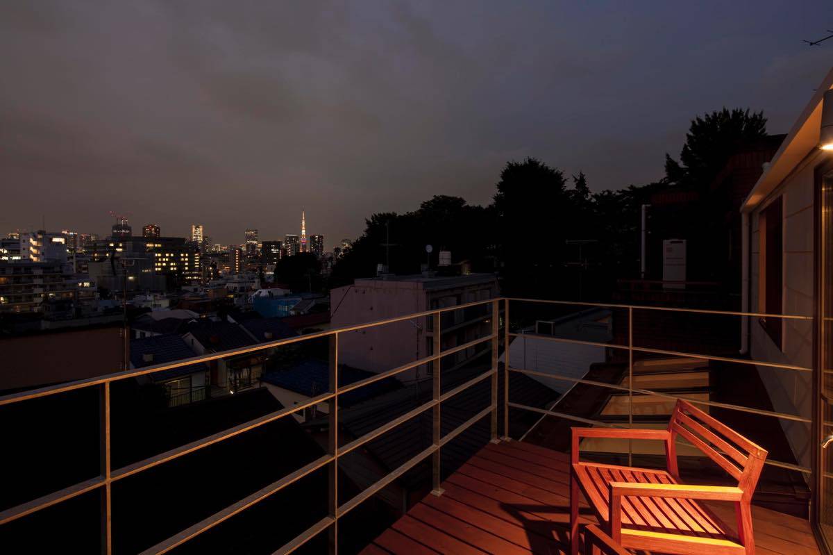 計画地はいわゆる高級住宅街として知られる白金の一角にあり、閑静ながら狭 い街路が入り組み、住宅が密集して建ち並ぶエリアに位置する。周辺には商店 街、学校、病院、研究所やお寺などの施設が点在し、かつて大名屋敷があった 名残から都内としては緑が多く残された環境にある。敷地面積は26坪と決して広くはないものの、北側傾斜の台地にあることから高低差により、3階や2 階の一部は視界が開けており、東京タワーや六本木ヒルズ、周囲の緑を望むことができる。クライアントからはこの眺望を活かしたすまいを要望された。