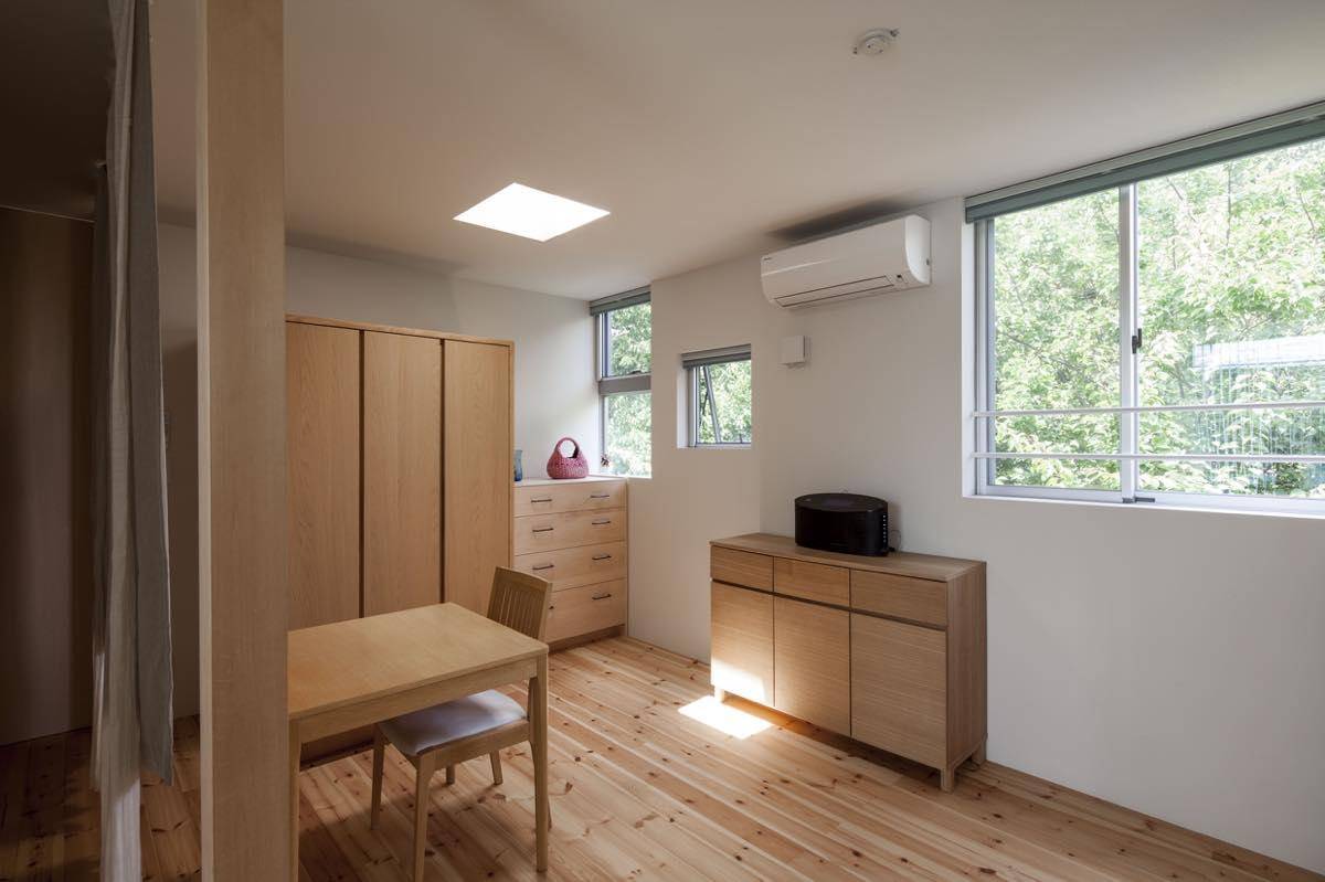 2階はワーク スペースだけでなく、各個室や納戸なども将来のライフスタイルの 変化に応じて柔軟に仕切ったり、配置を入れ替えることができる。
