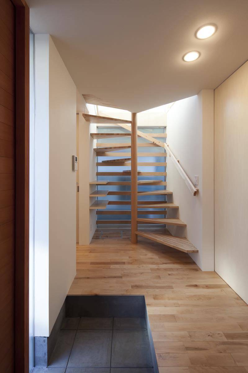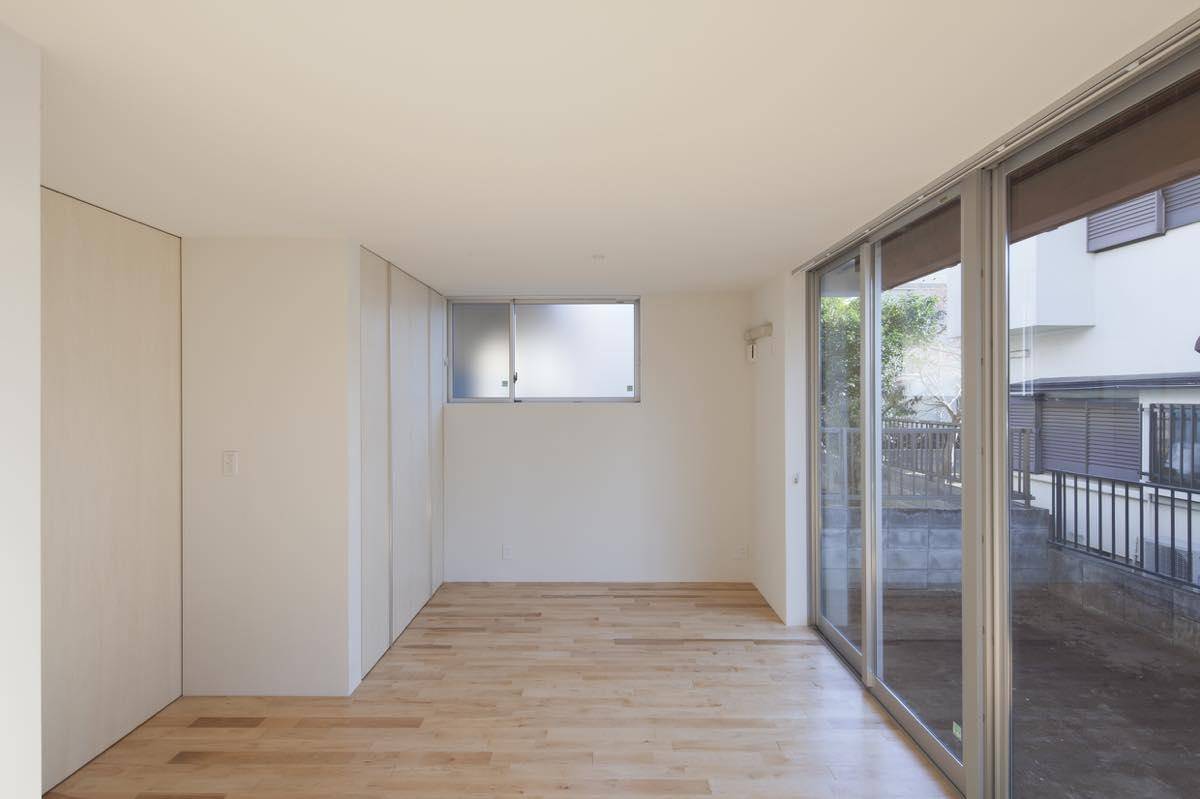やや密集した住宅地の中にあり、周辺は新旧の住宅が入り交じっている。南側の東向きと南西側に視界の抜けがあり、わずかに借景できる木々がある。1階は閉鎖的で陽当たりもさして望めないため、寝室や水回りを配置した。開放的なつくりが可能な2階にLDKと 客間を兼ねた予備室を配置した。当面、1階の広い個室を家族の寝室として使い、子どもの人数や成長にあわせて子ども室として2室に間仕切ることができる。2室とも子ども室とした場合には2階の予備室を主寝室として利用する。