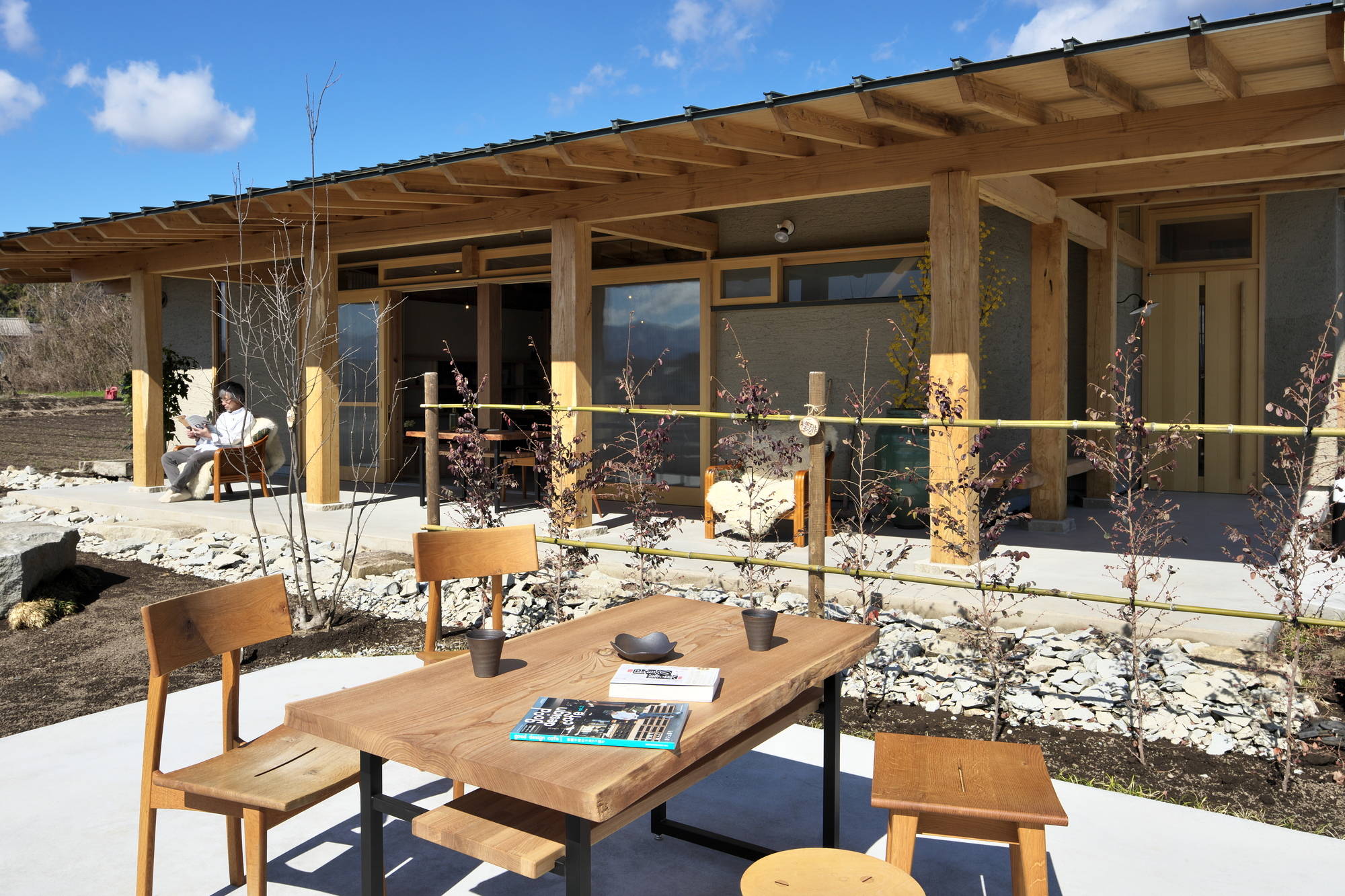 テラス、庭、その先の景色も含めて、このお店の敷地としてとらえて計画した。