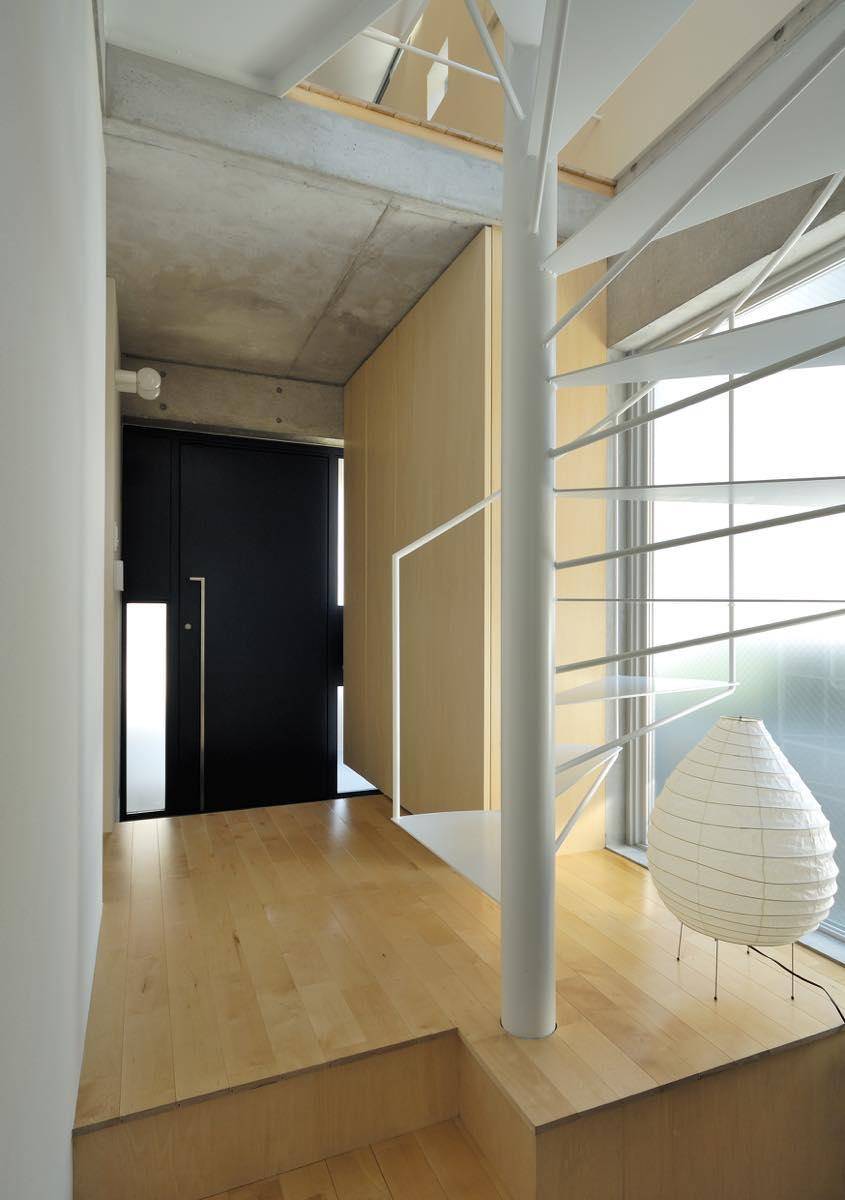 2階にLDKを配置し、オープンな螺旋階段部を吹き抜けにすることによって開放感を演出しつつ、光を室内に取り込むことで狭さを感じさせないように考えました。