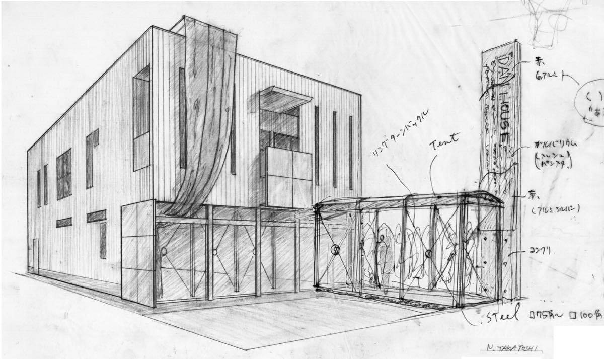 学生時代に設計事務所や内装業者でのアルバイトでの設計や現場経験があるとはいえ、大学卒業してすぐのことで右も左もわからず、何案か考えるもことごとく予算に会わずに概算見積段階でボツになる。