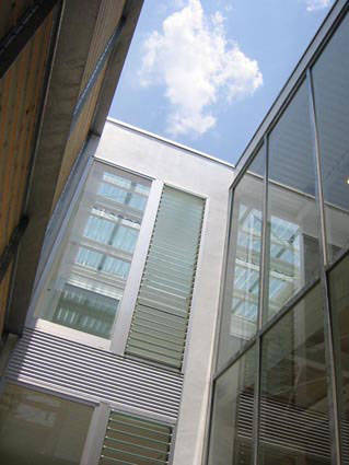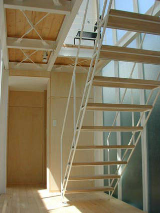 階段室も兼ねる中庭に面した玄関ホールは中庭と一体となって光の通路としても機能するように考えました。