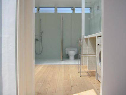 外部に適切な洗濯干場が計画できないことと快適な入浴のために、2階の北側に広めのユーティリティとバスルームを配置しました。ユーティリティ上部は全面トップライトとして洗濯物を干す場所と同時に、バスコートの役割も兼ね備えています。