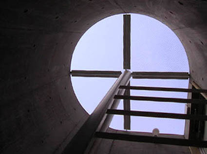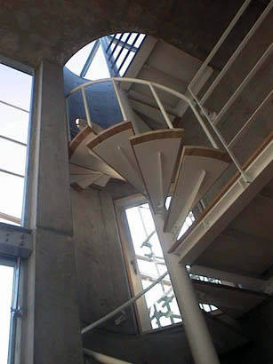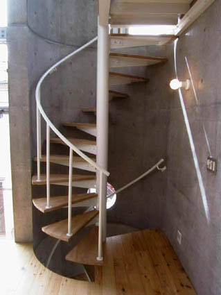 階段シャフトは曲面にすることで面積効率を良くすると共にRC打放しの建物であっても優しい印象を与えるように配慮しています。