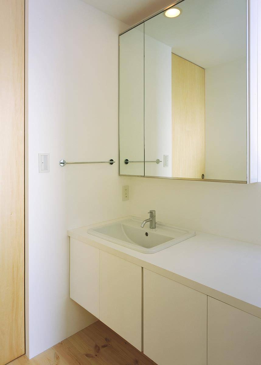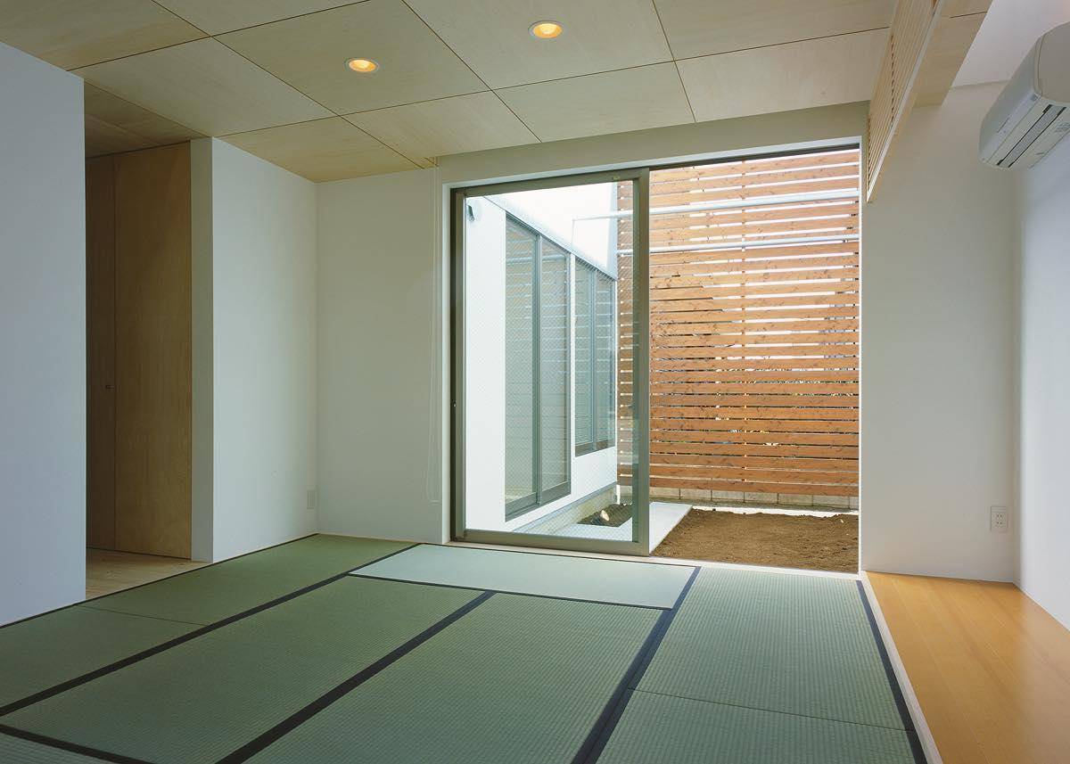 パブリックとプライベート、内包された外部空間と外に広がる内部空間、堅 と柔、明と暗など相反するエレメントによって空間やファサードを構成しています。 このような空間構成が、全体を認識できる建築空間になるのではないか、それが家族を意識できる空間になるのではないかということを考え設計した住宅です。