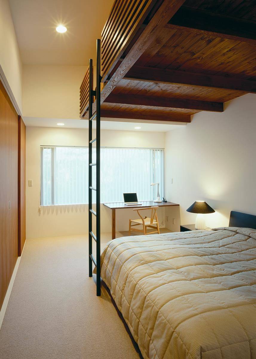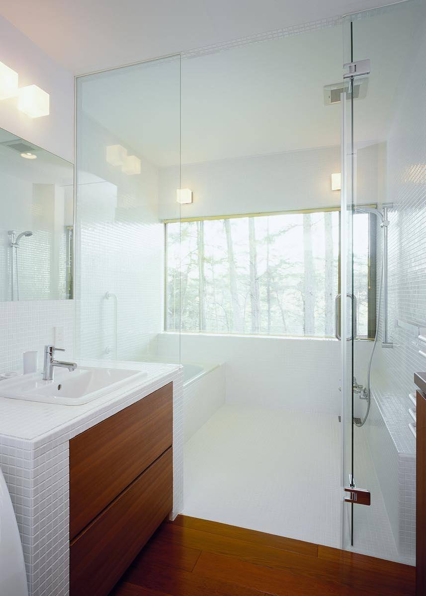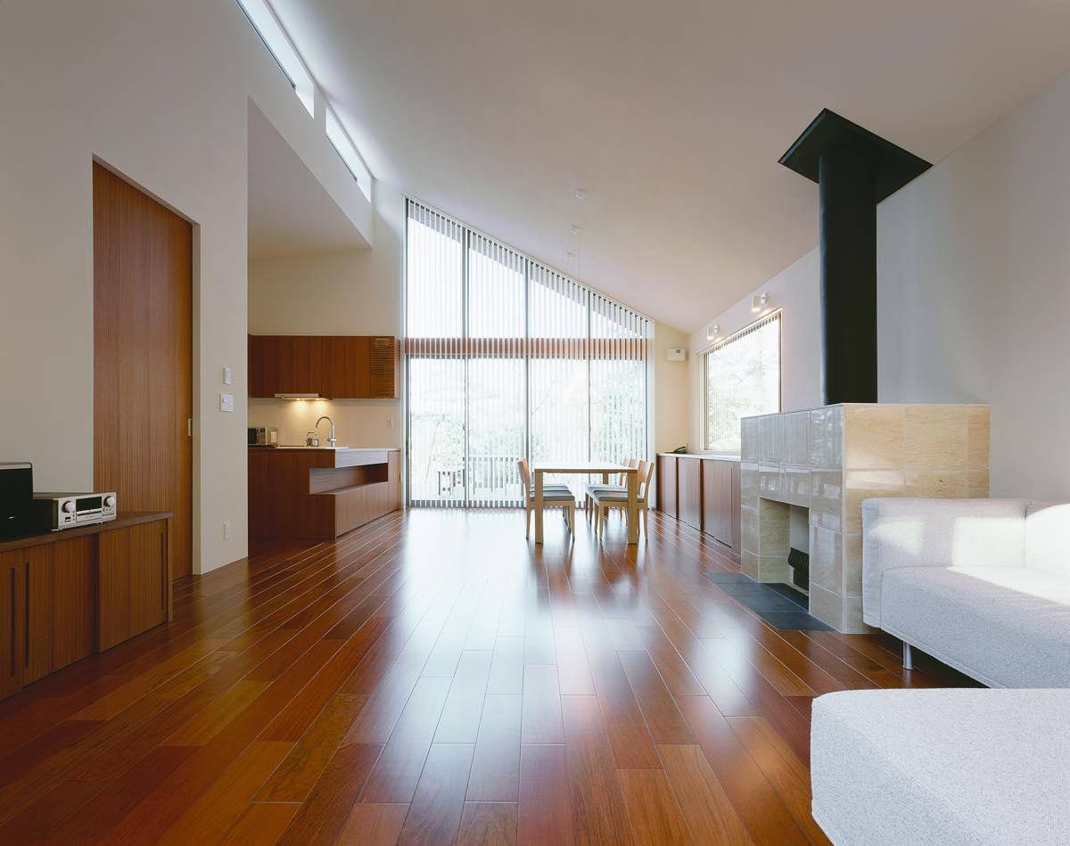 夏の高原の爽やかさはもちろん、雪景色の蓼科も楽しめるようにセルロースファイバー充填による高気密高断熱化に加え、全館床暖房、暖炉、冬期の水抜きを不要にするエコ・ホットなどの快適な設備をそなえる。