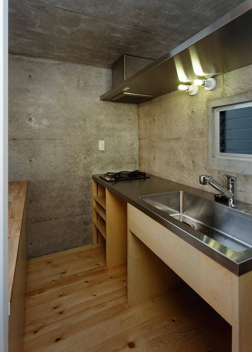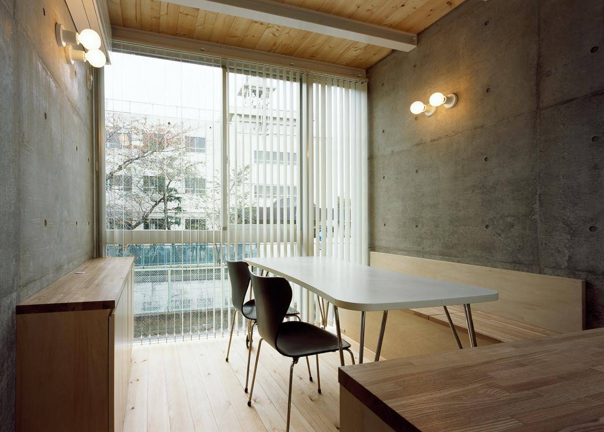 大田区を流れる呑川に面する狭小住宅、それも計画河川によって削られ敷地面積は約9坪という極小サイズの住宅の計画である。周囲は閑静な住宅地であり、川沿いの桜並木が心地よく季節を表現している。