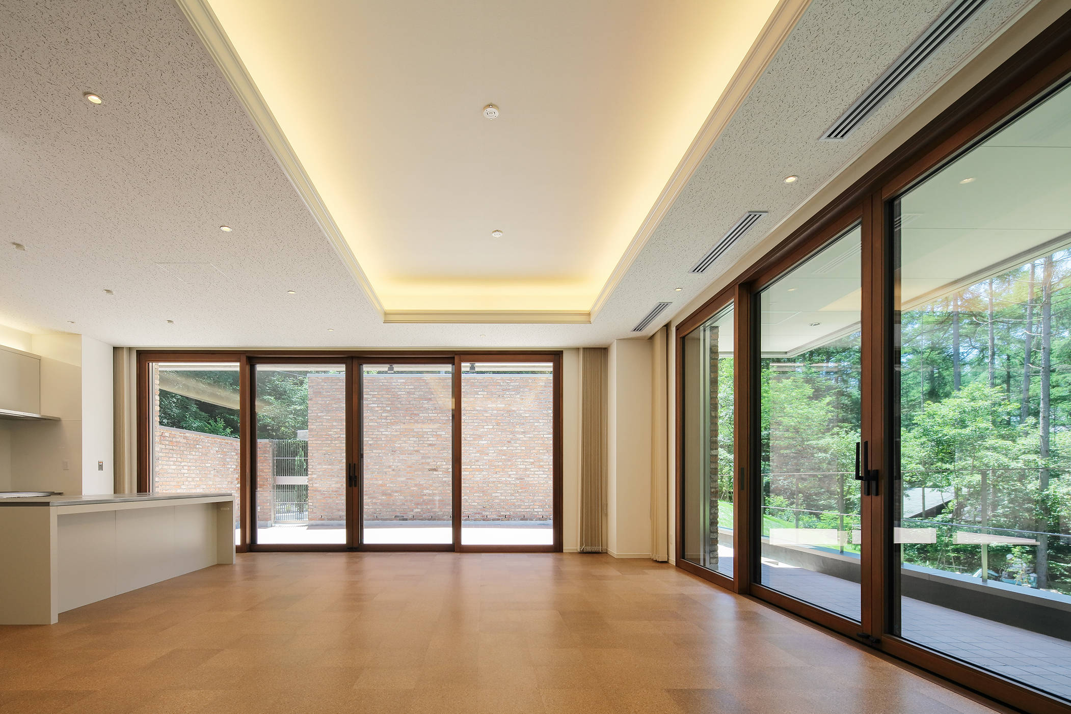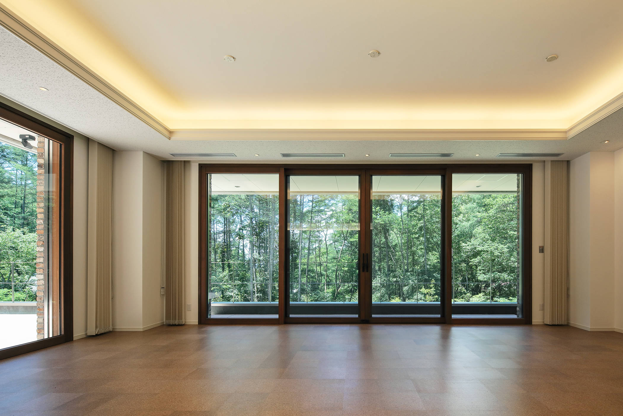 蓼科高原に建つ別荘です。自然を採り入れた建物は大人数のパーティを催すことも可能で、螺旋階段が上下階を緩やかにつないでくれます。