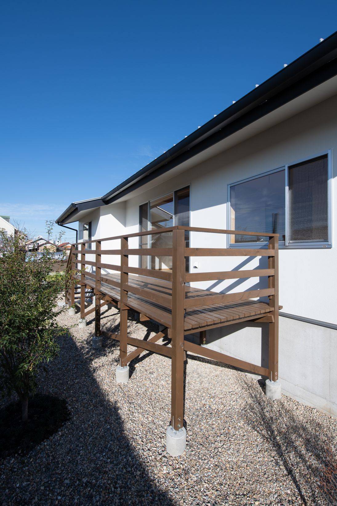 雪深い地方にある別荘をイメージして、庭代わりの大きなDECKを取り付けて、DECKの前には植栽をしてリゾート感のある暮らしを意識して設計しました。