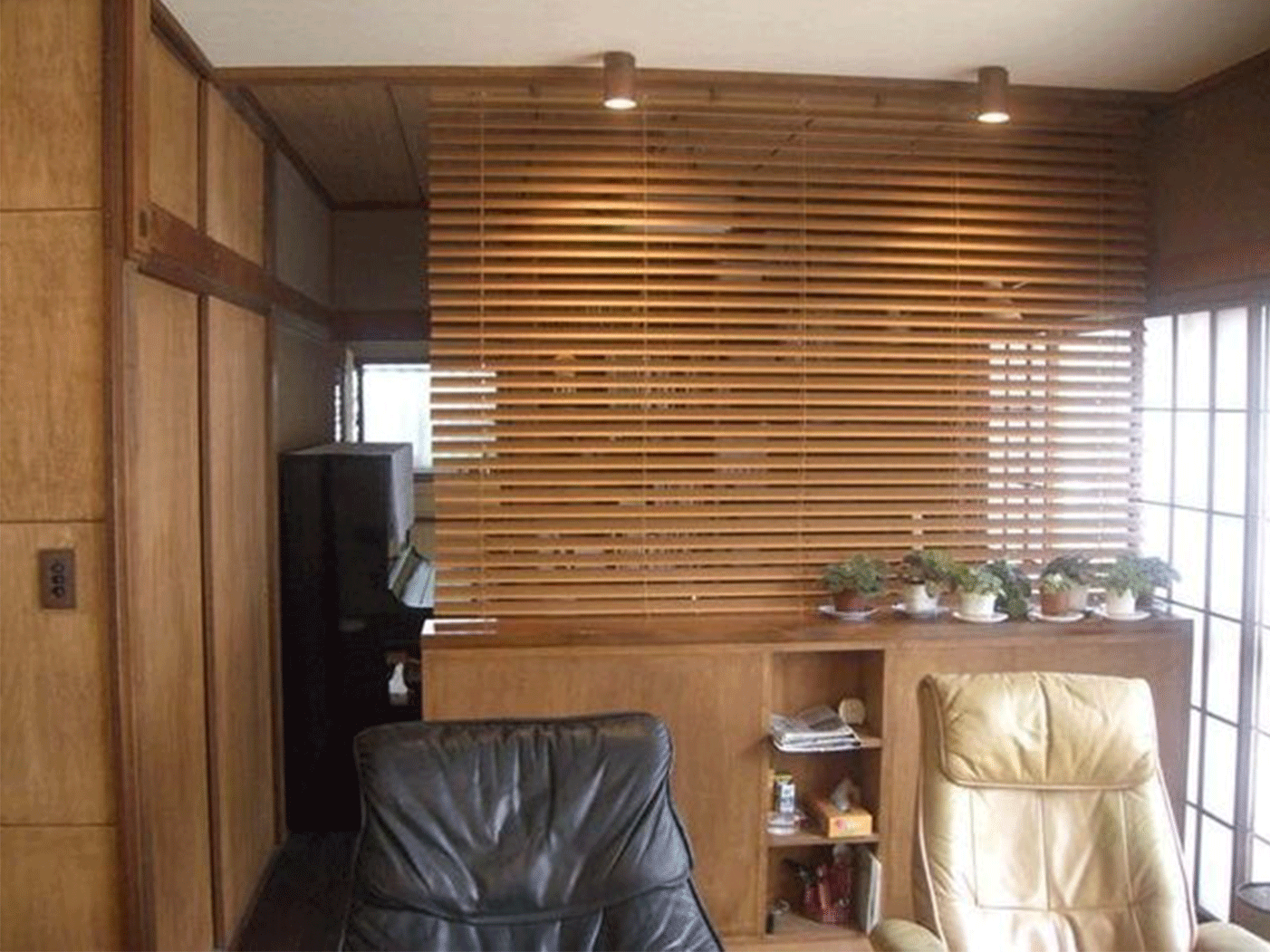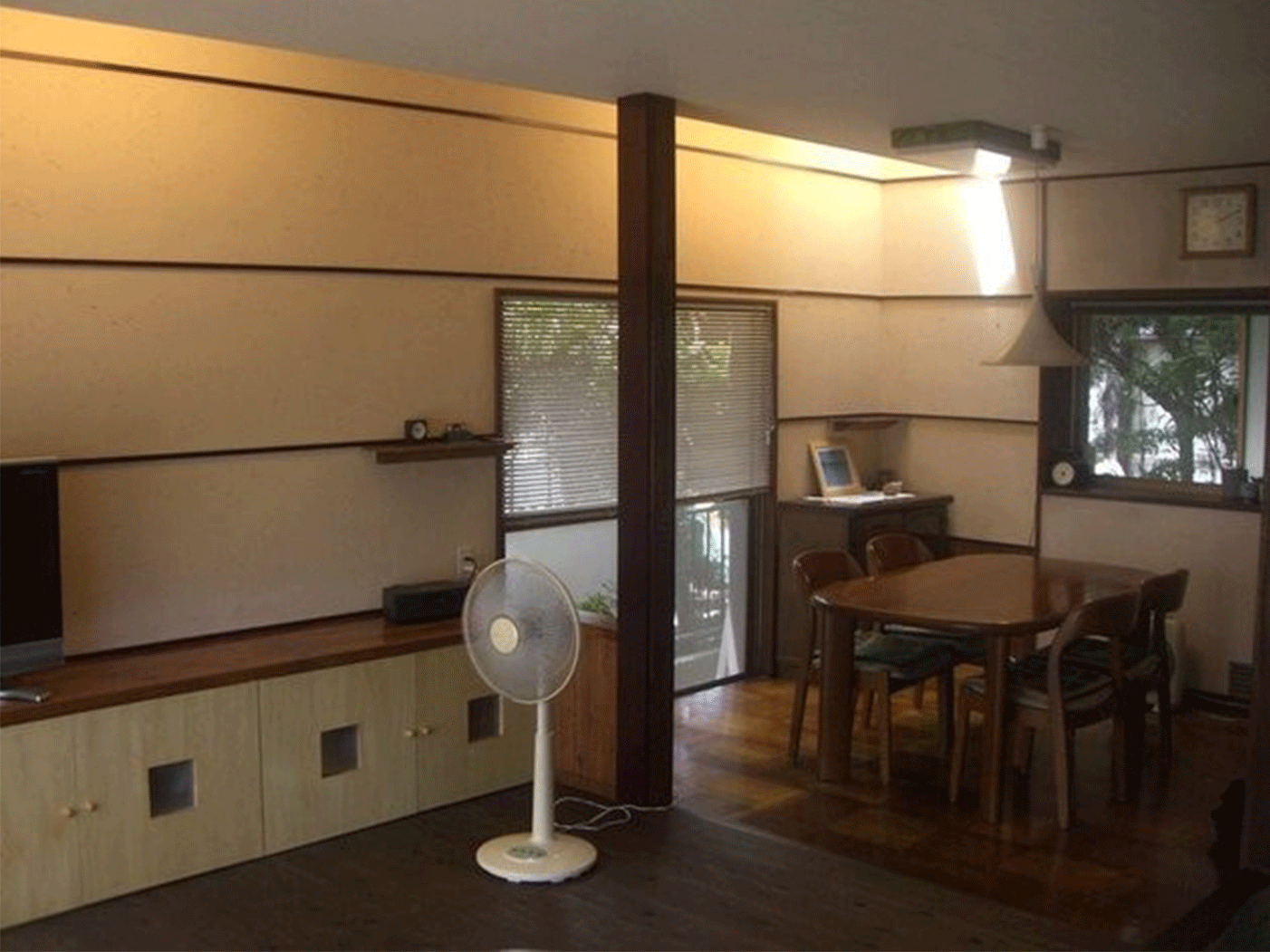 また、それまで別々だったダイニングとリビングとの間の柱や間仕切りを、構造補強しながら撤去し、更に和室との間仕切りも撤去しウッドブラインドとする事で、全体的にワンルームのとても明るく広い部屋になったのではと思います。