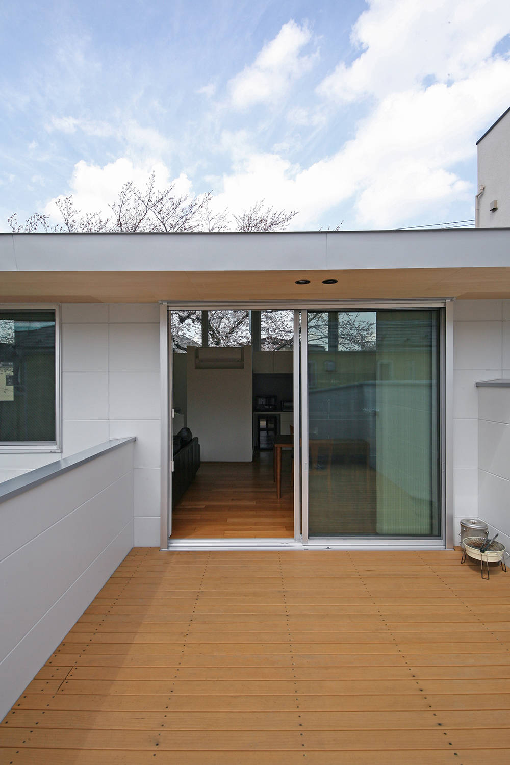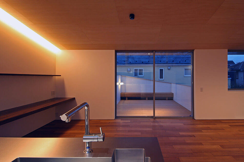 2階に設けたワンルームのLDKには、ご主人のこだわりのキッチンがあり、ウッドデッキの南テラスとともにご家族や親しい人たちと一緒に食事やバーベキューを楽しむこともできる住まいになっています。