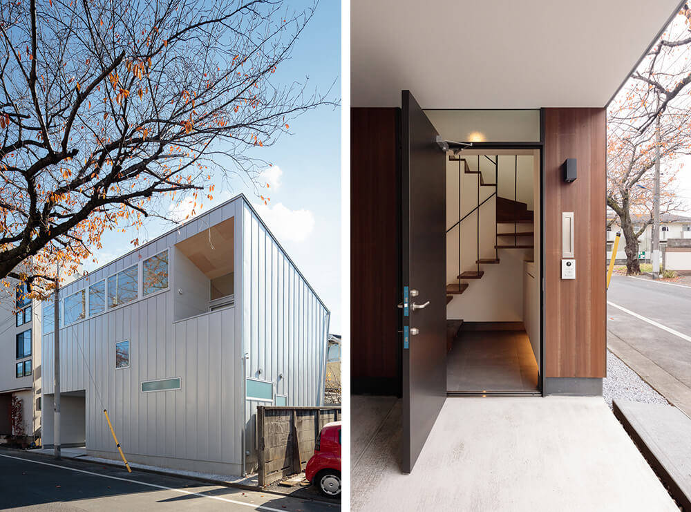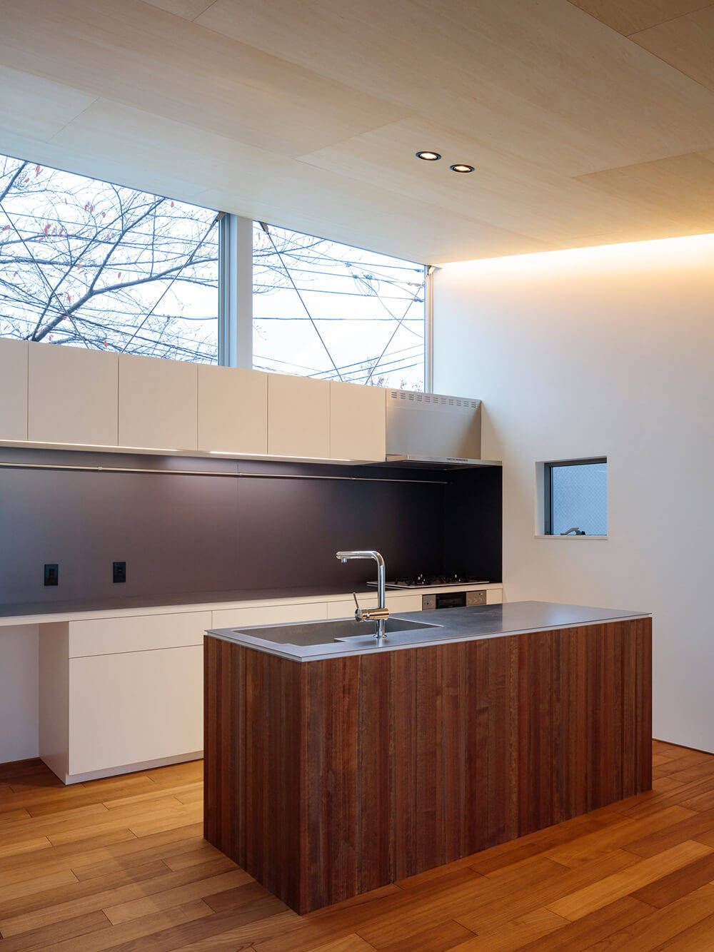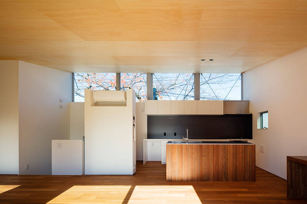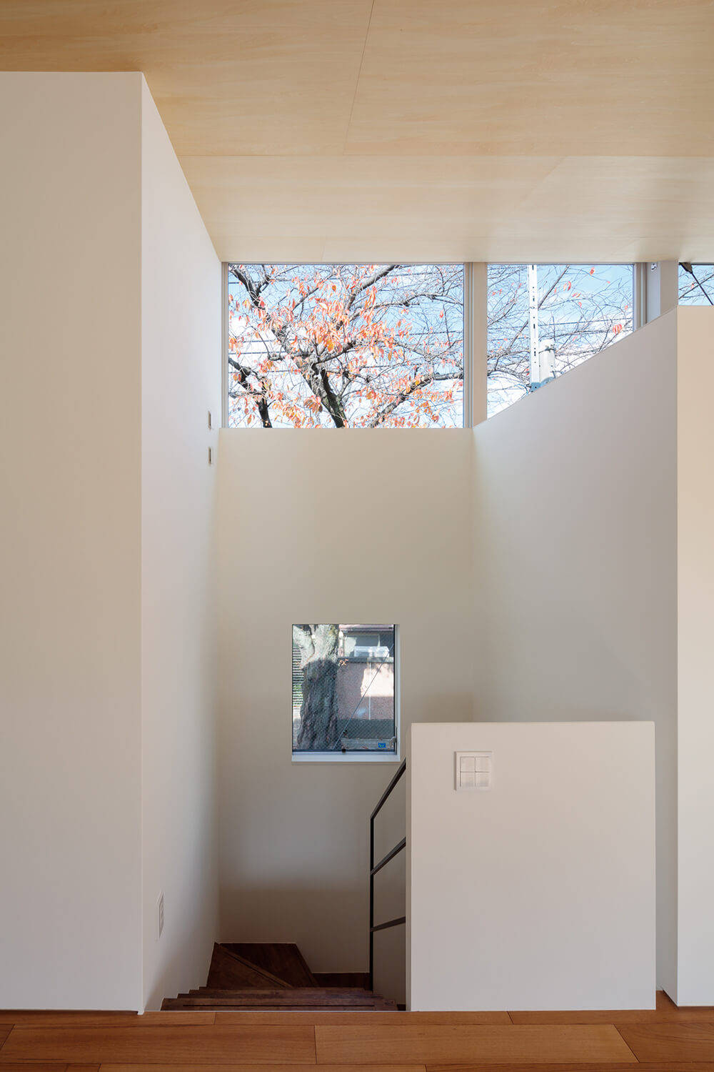 道路に大きく枝を張った桜並木の景色を室内に取り込み、一年を通した自然の変化をより身近に感じながら暮らしていける、子育て世代4人家族のための住宅です。