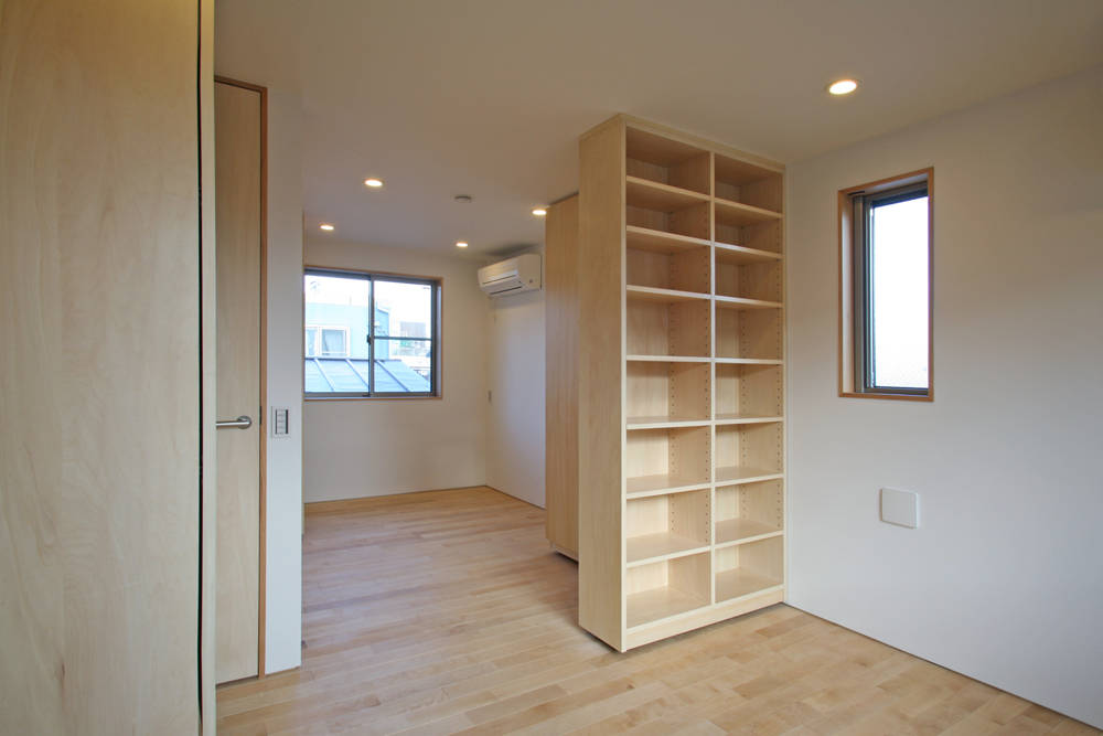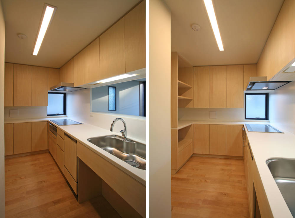 3階建ての2階部分LDKを配置。母親の部屋をキッチンのすぐ隣に作り、調理や食事の時に移動がラクにできるよう配慮しました。