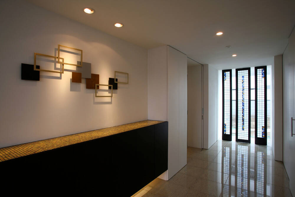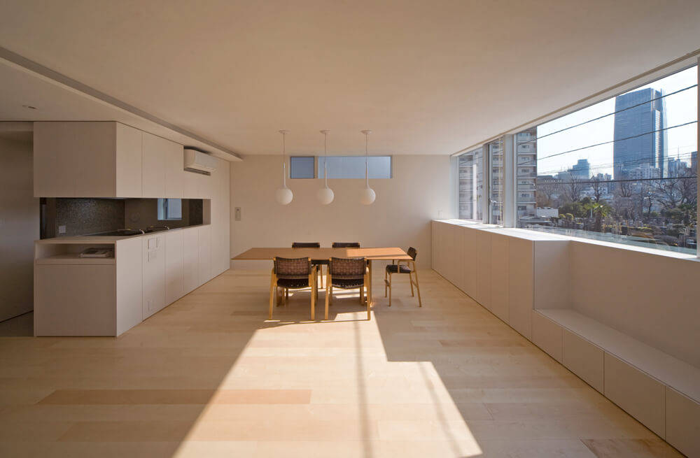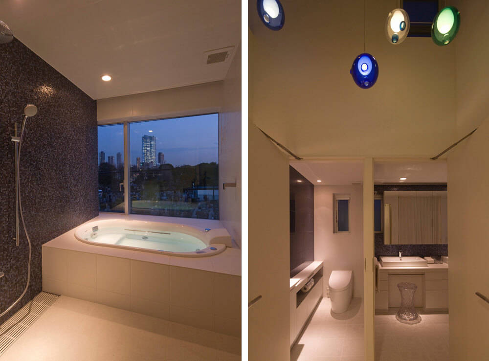 ご夫婦と3人のお子さん、お祖父さんの6人で暮らすRC造の二世帯住宅。近隣のマンションからの視線に配慮しつつ、東京タワーの見える南側の眺望と北側隣地の桜の景色を最大限室内に取り入れた住まいです。